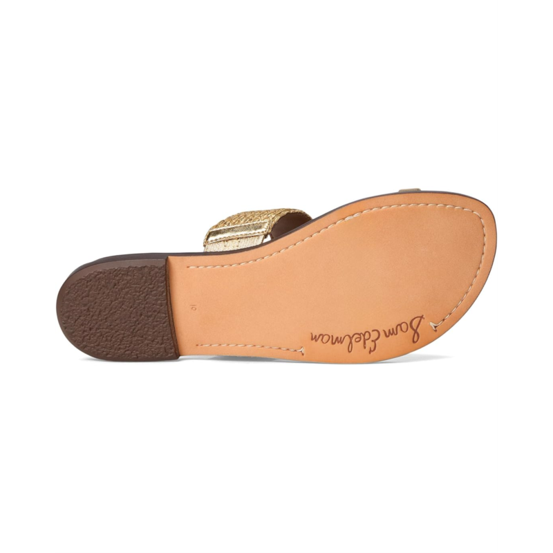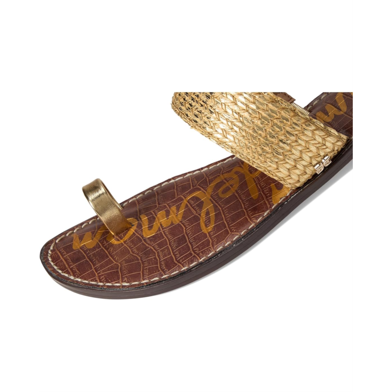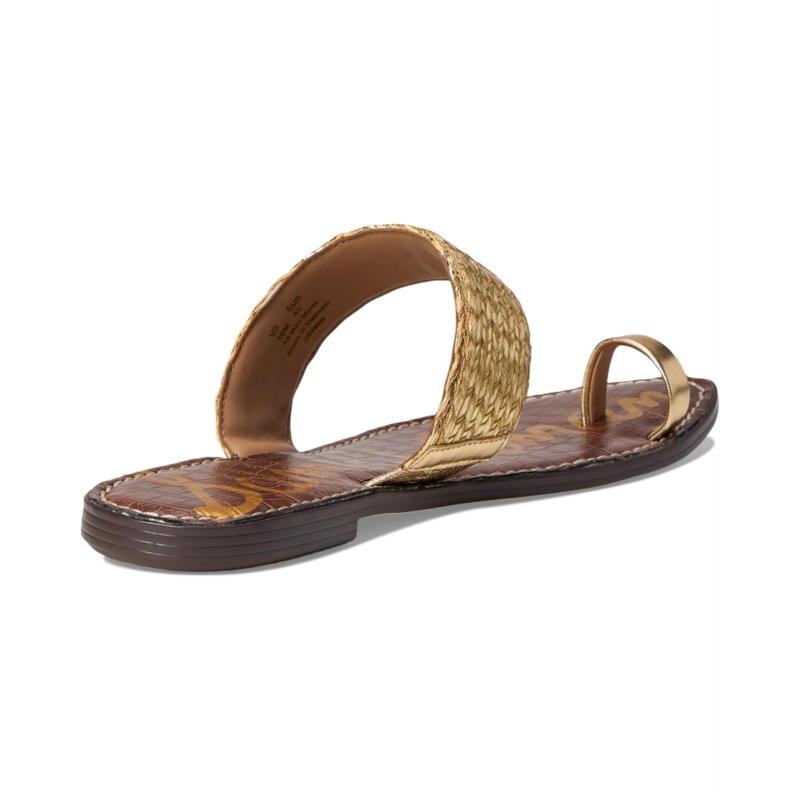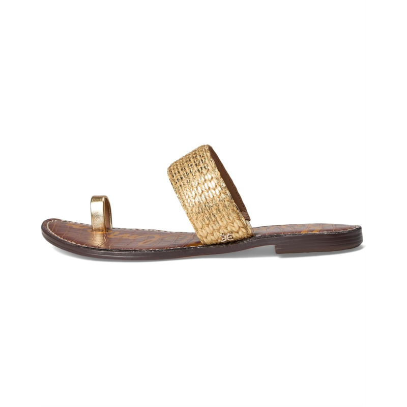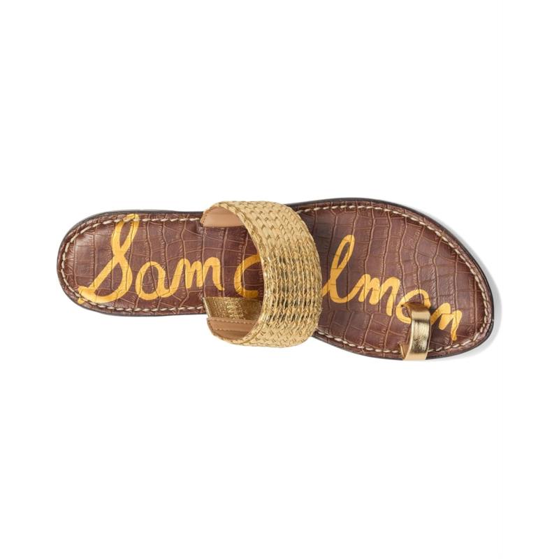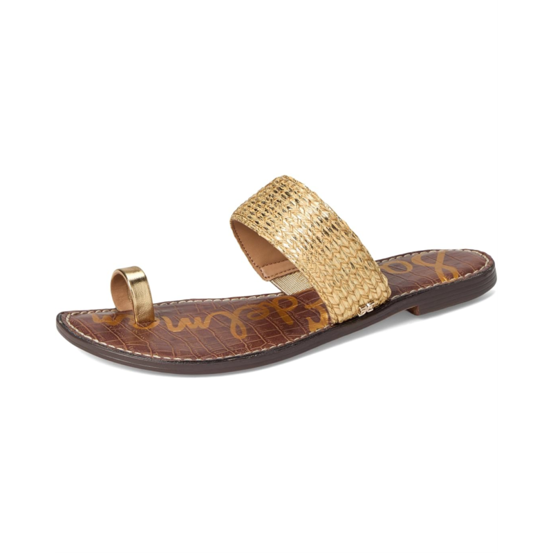 - Defining chic simplicity at its finest, the Sam Edelman Gemini toe loop sandals offer all day comfort with their cushioned footbeds. This slip-on footwear is designed with polyurethane upper, lining, and features an almond toe silhouette.