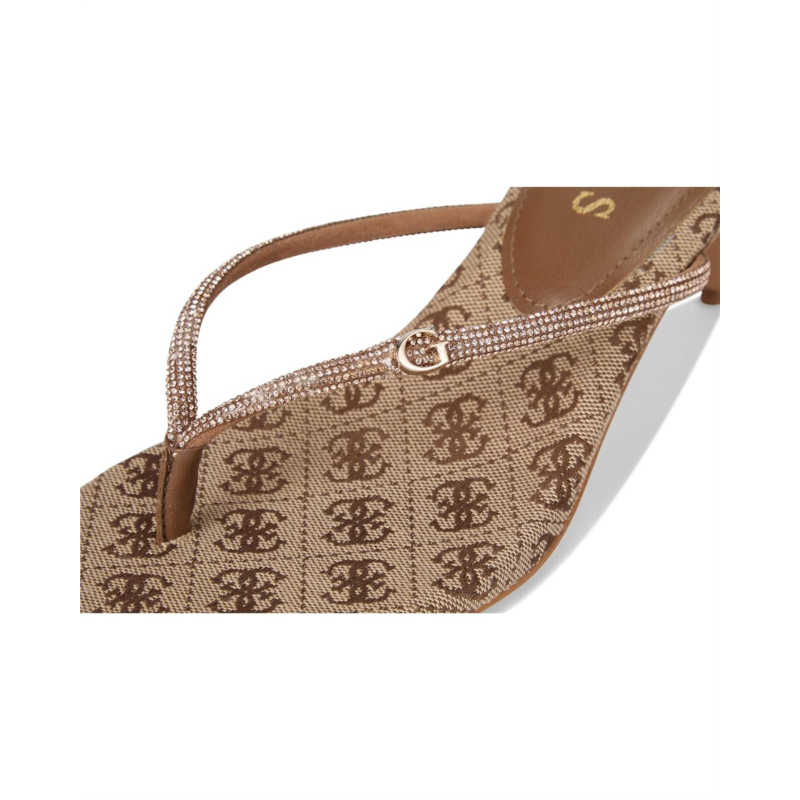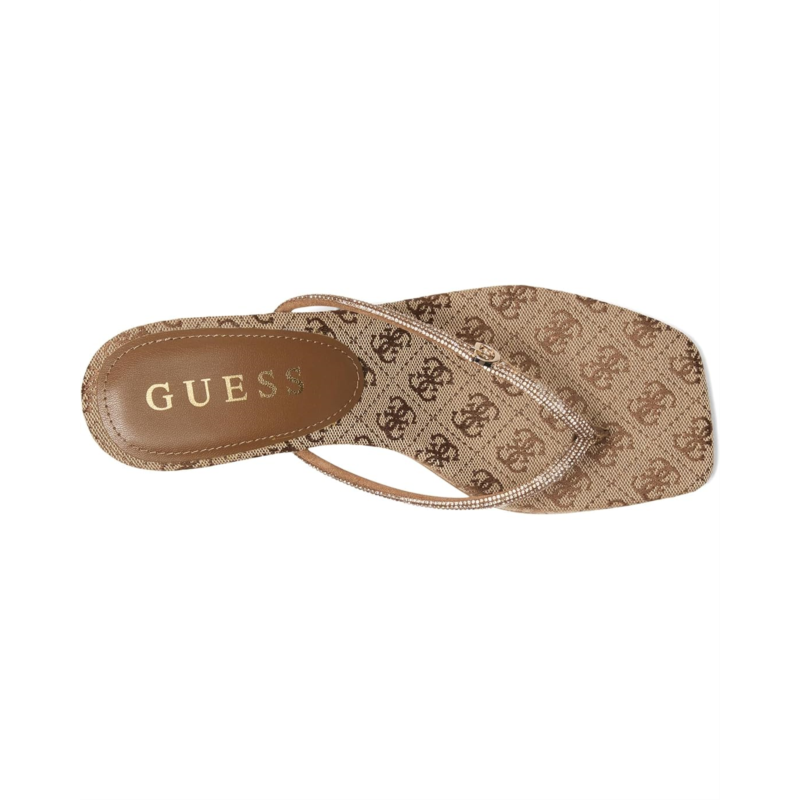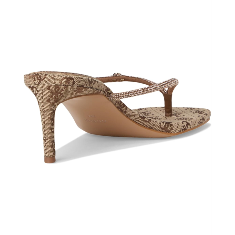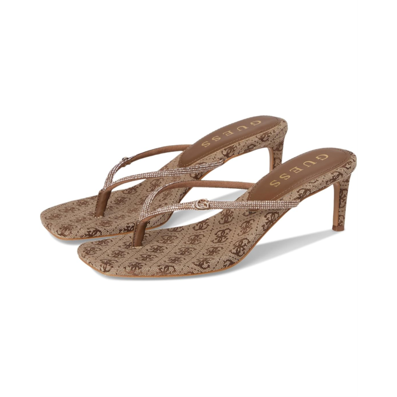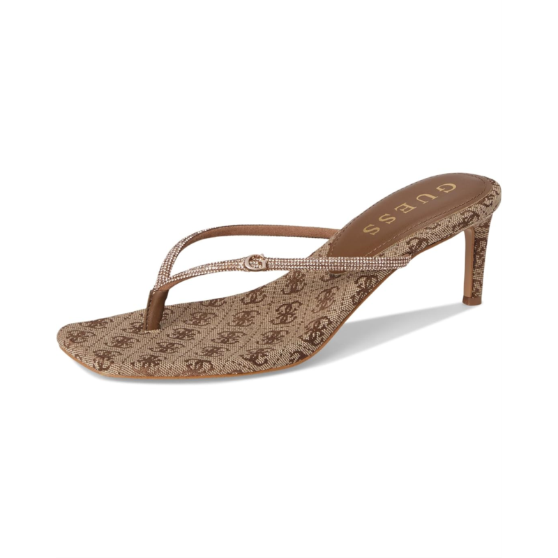 - The GUESS Mayan is your ultimate go-to for chic, effortless glamour. Featuring a rhinestone-embellished thong strap and a sleek kitten stiletto heel, this slip-on style brings instant sophistication to any outfit. Crafted with a rubber upper, PU lining, and synthetic rubber outsole, it offers lightweight comfort and durability while keeping your look on point. Perfect for brunches, date nights, or evening soirees, the Mayan transitions seamlessly from day to night, giving your wardrobe that elevated touch youve been craving. Its playful shimmer catches the light, drawing attention wherever you go, while the easy slip-on design ensures no-fuss elegance.