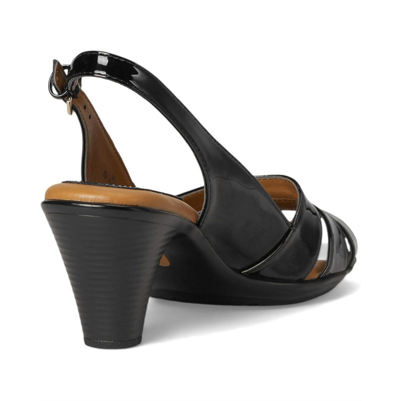 - Upper available in various materials and features a sling-back strap with an adjustable buckle closure.