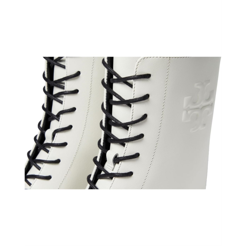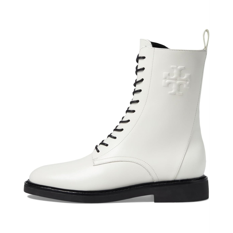 - A pair of luxurious boots will always give you a luxurious feel and so do the Tory Burch Double T Combat Boots. Featuring a classic silhouette with a polished leather upper, a rounded toe, and a lace-up closure, the boots are sure to offer you an elegant look. They are grounded on a flexible sole with a cushioned footbed for superior comfort and come with a zippered side closure for easy on and off.