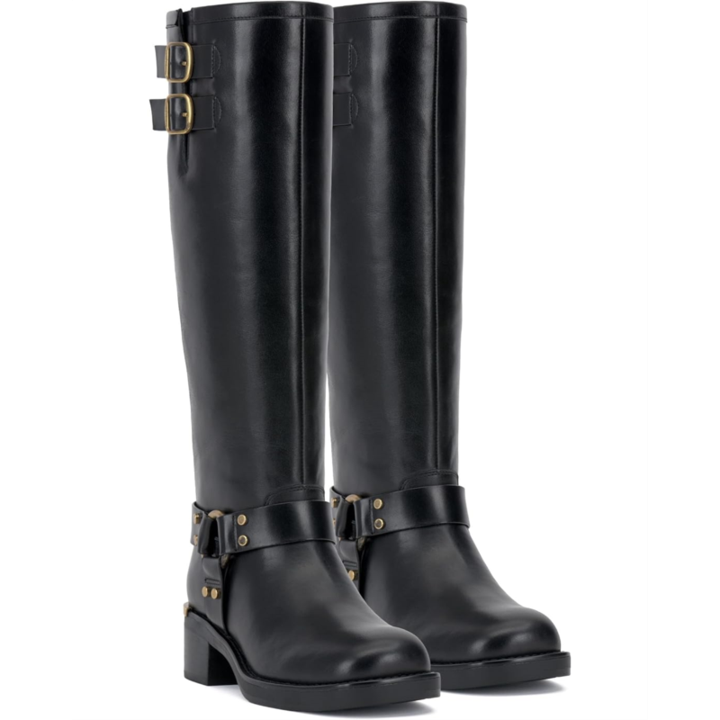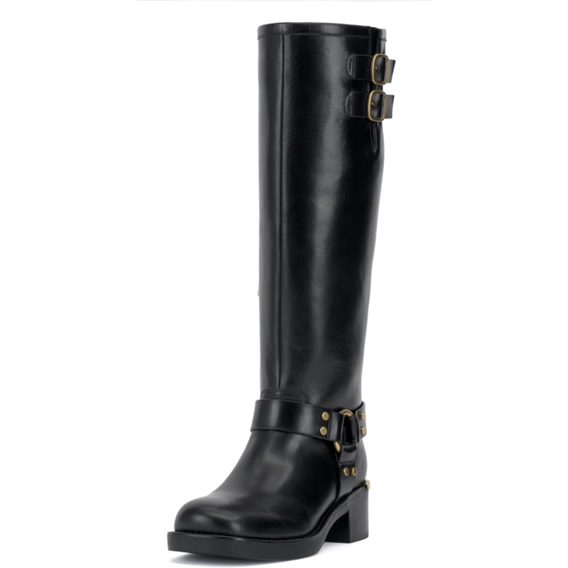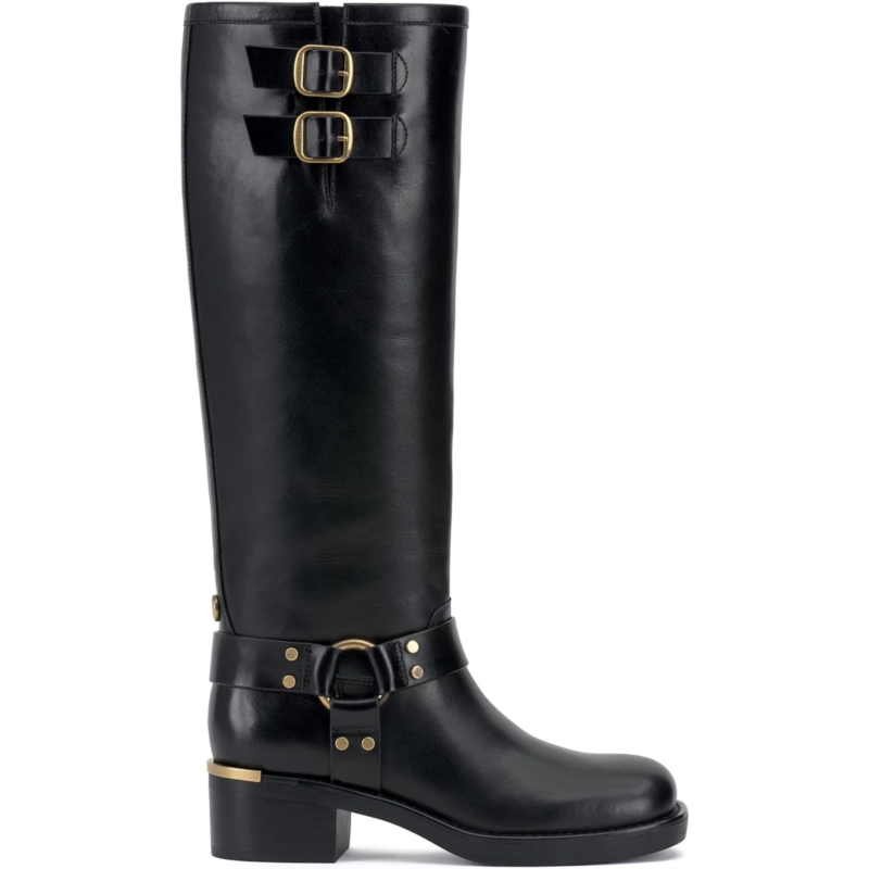- Kick around in the Kaydin engineer boot. The knee high shaft has the traditional ankle harness with O-ring detail and adjustable double buckle finishing at the top of the shaft. The heel has a metal rand detail, a soft square toe, and rubber outsole. Unlike a traditional moto boot, there is inside zip for easier entry.