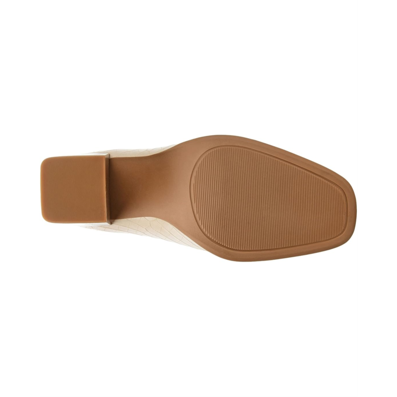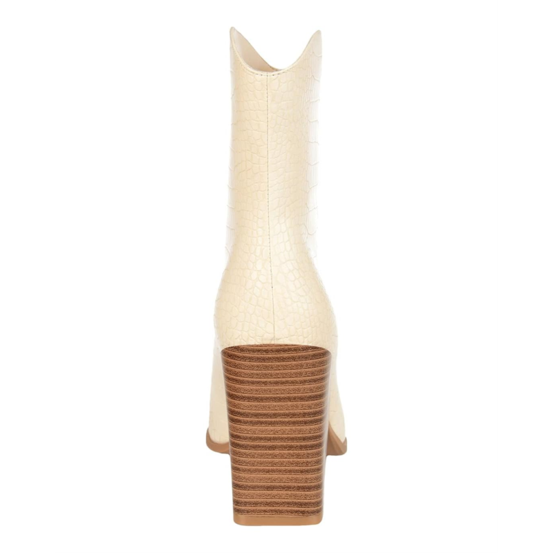 - Wester-inspired bootie with square-toe design and stacked heel.