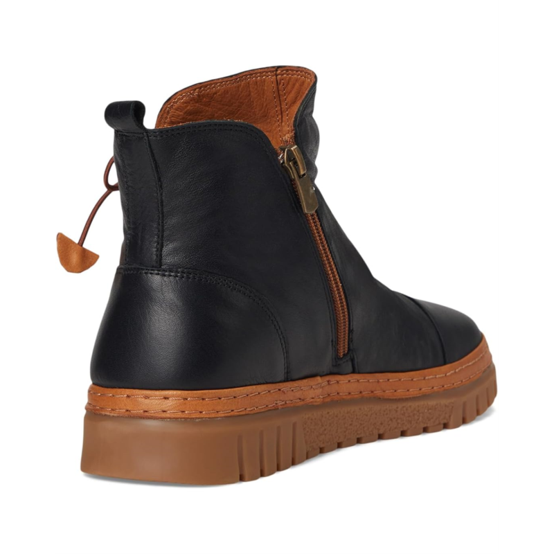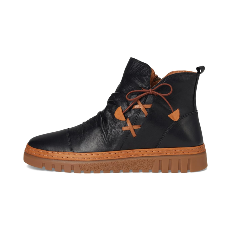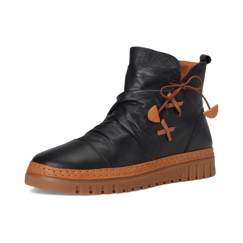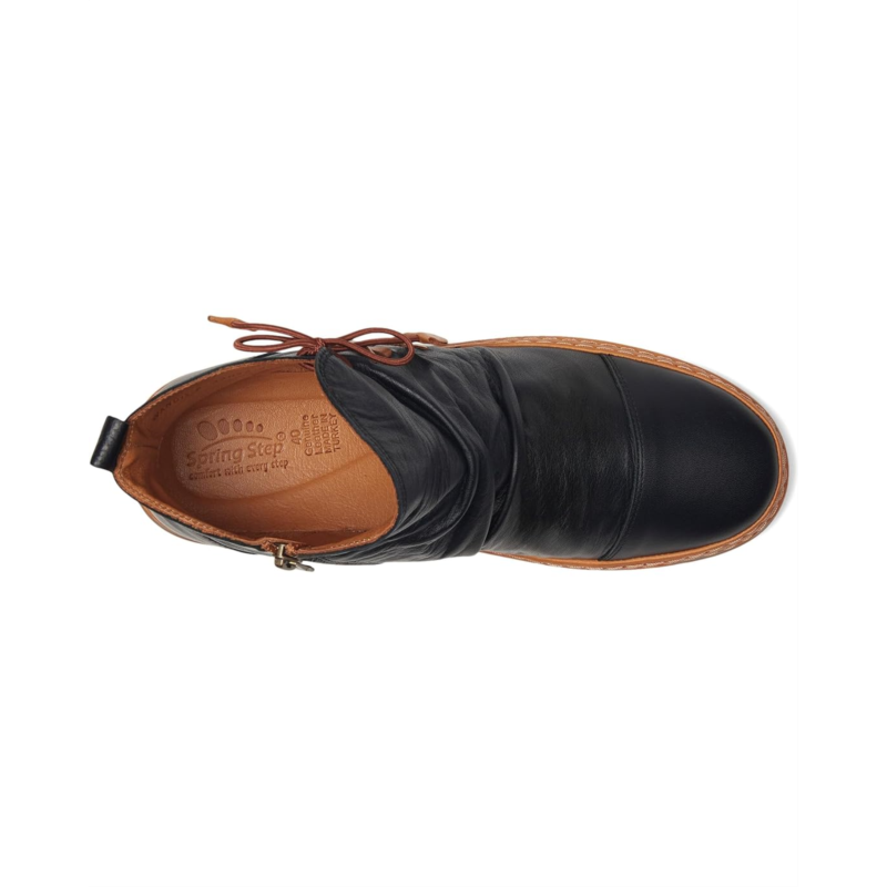 - Step into effortless elegance with the Spring Step Vandis leather boots! Designed for versatility and comfort, these ankle boots feature a premium soft leather upper with a stylish ruched finish. The elastic decorative laces add a unique and modern touch, while the inside zipper closure ensures wearable ease. Crafted with a cushioned insole featuring arch support, these ankle-high boots deliver all-day comfort, making them perfect for casual outings, work, or travel. The sturdy rubber outsole provides excellent traction and stability, blending fashion and function effortlessly.