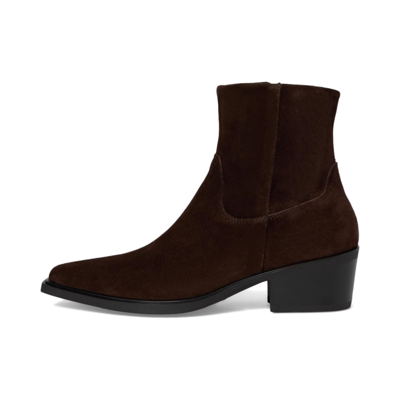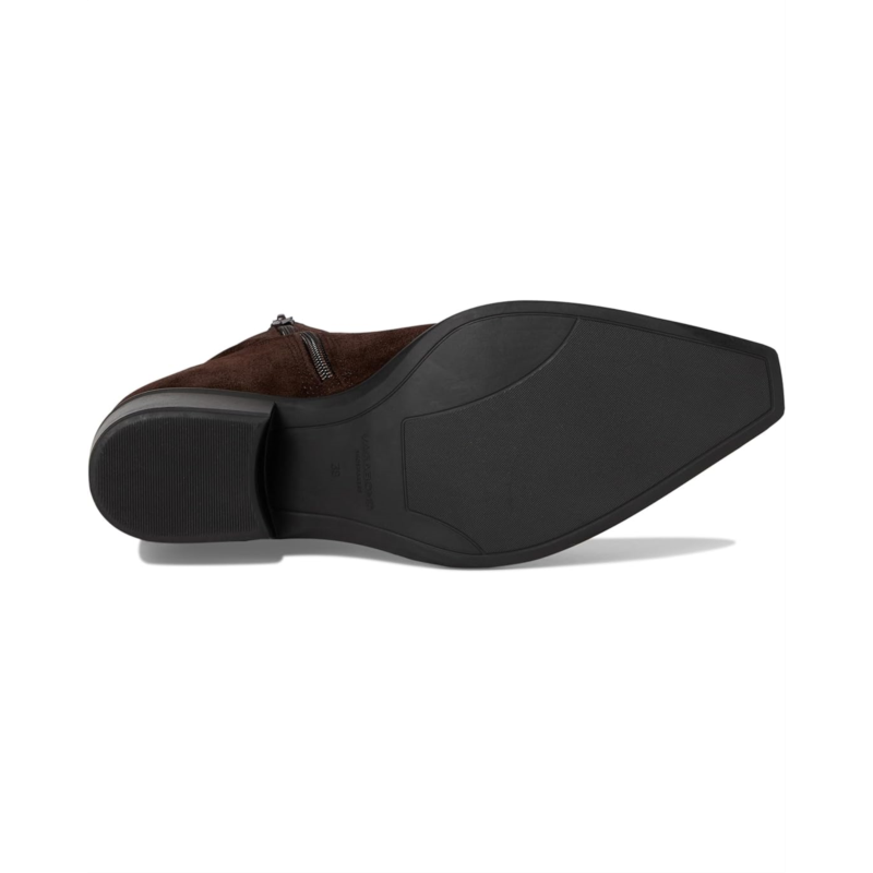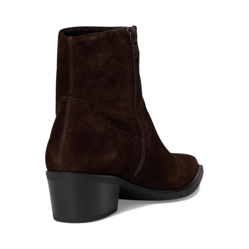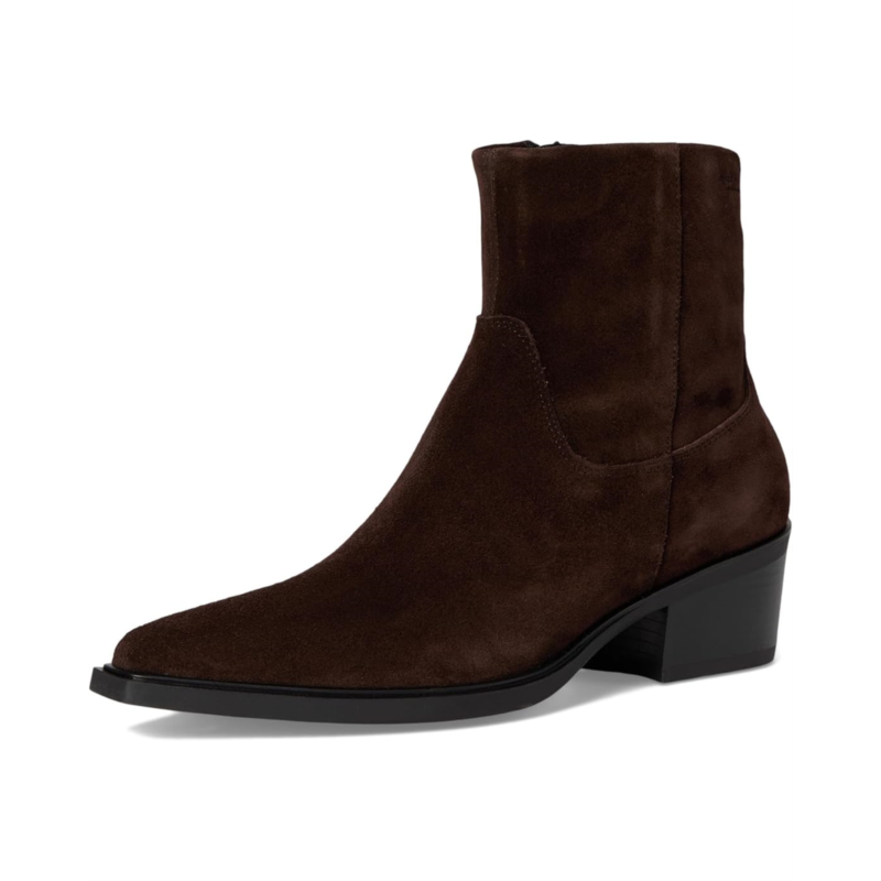 - The Vagabond Shoemakers Kelsey Suede Bootie boasts a minimalistic silhouette with a western-inspired design. The style is crafted from suede upper and features a snip toe shape, zippered side closure, and decorative seams.