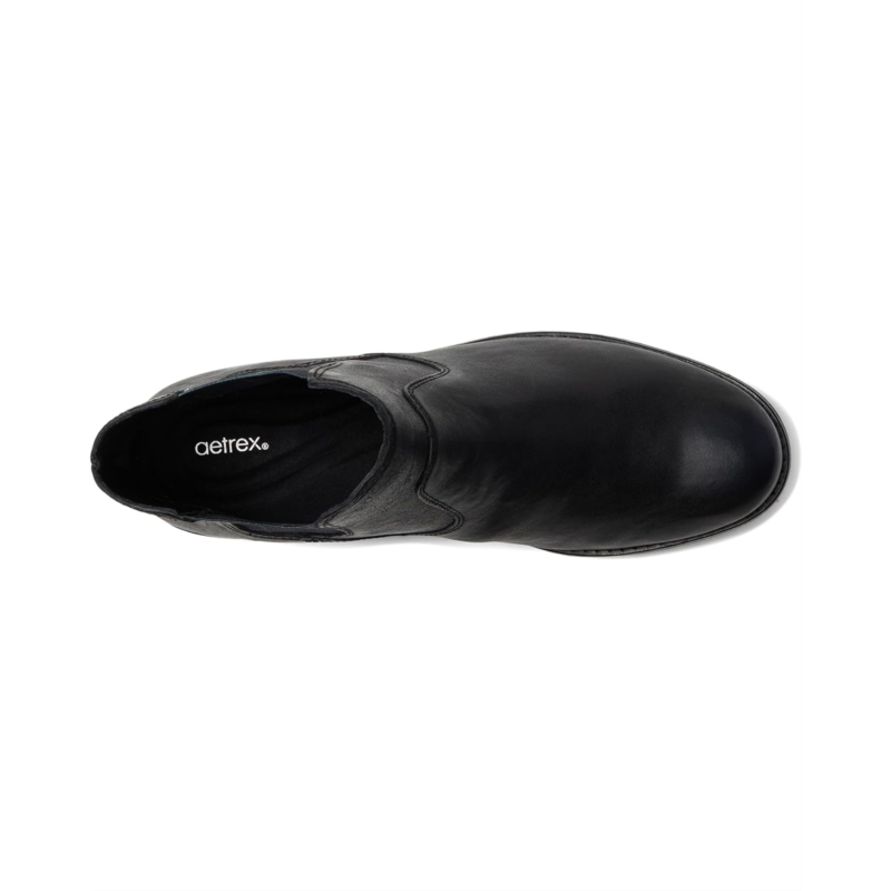 - Introducing the effortlessly stylish Aetrex Kaylee Ankle Boots, a must-have addition to your shoe closet. Made from weatherproof genuine leather upper, this ankle boot has stylish gore, adding a touch of flair to your look. Designed with stretchy gore panels, these boots provide optimal adjustability, ensuring a perfect every time. The Kaylee boots feature arch support, a removable insole, and complete underfoot support.