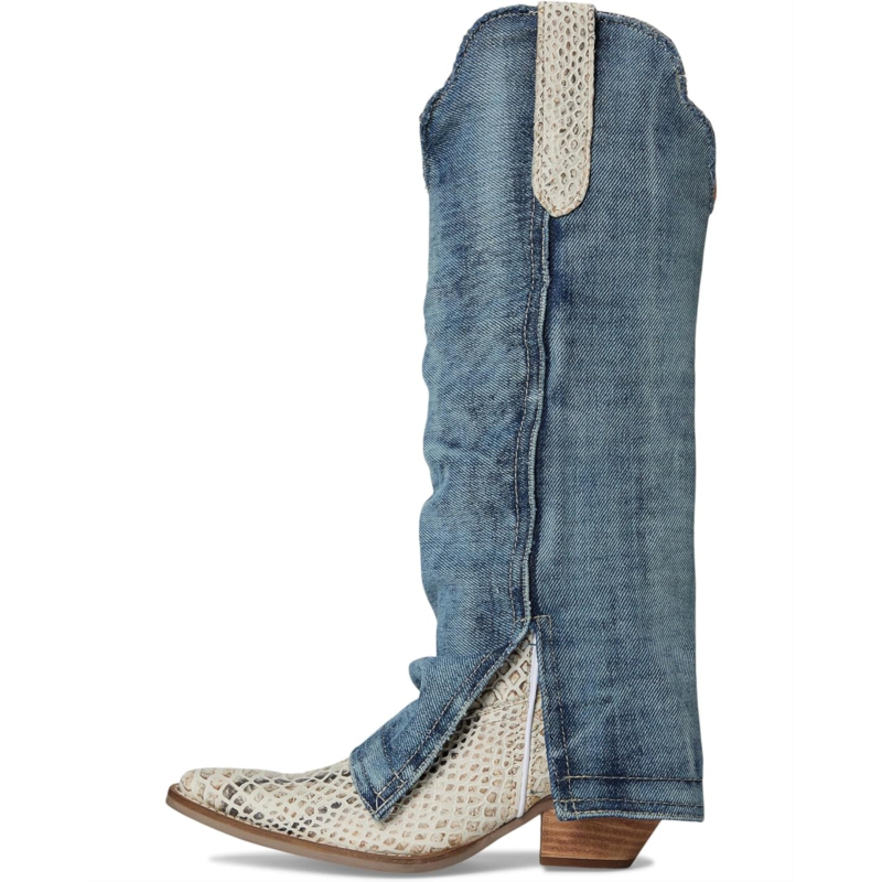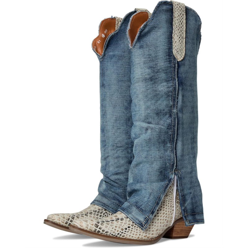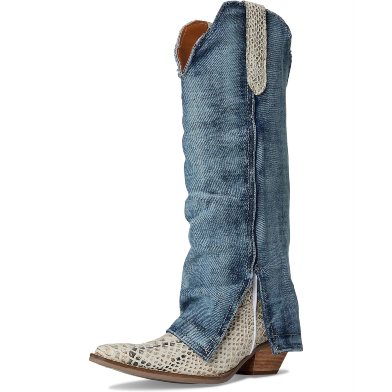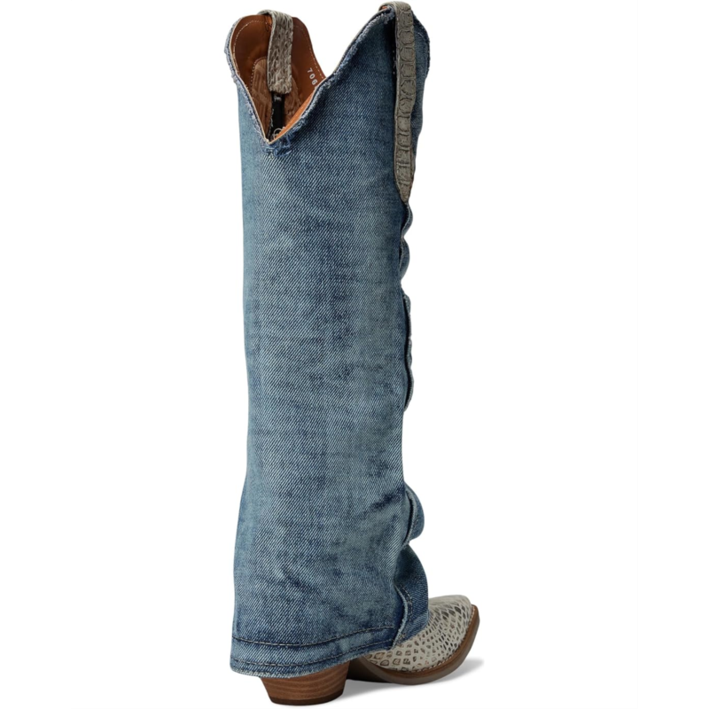 - Step into the spotlight wearing Dingo Shabby Leather Boot - your trendsetting statement in footwear. Crafted with luxurious leather lining, a robust rubber outsole & insole, and a convenient pull-on style, this mid-calf beauty merges fashion with functionality. Adorned with an exotic lizard print on the vamp and straps, and a chic denim fold-over shaft, it''s your go-to for a fierce yet elegant look that stands tall with confidence