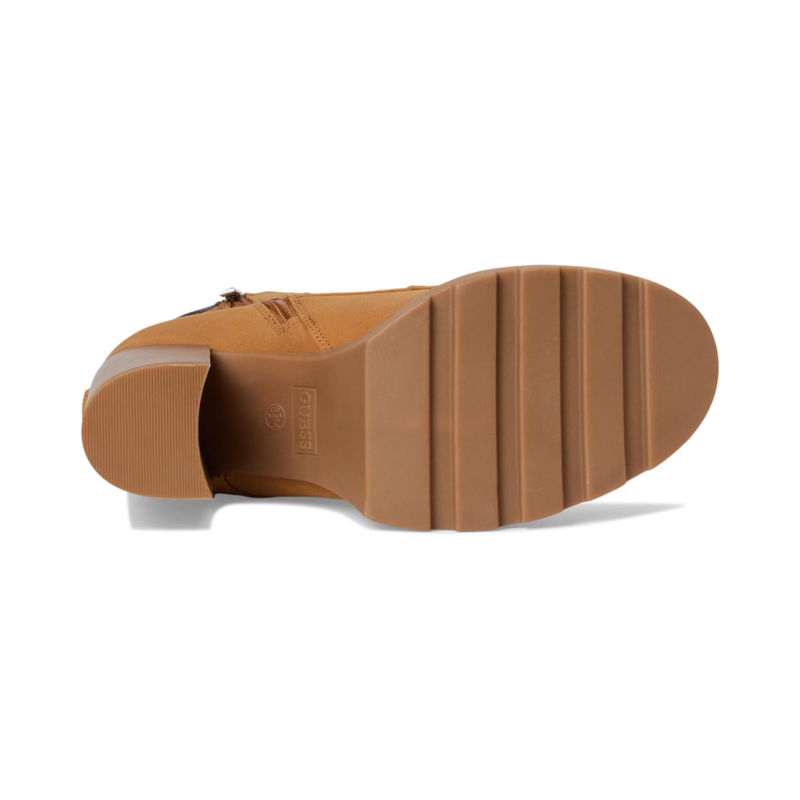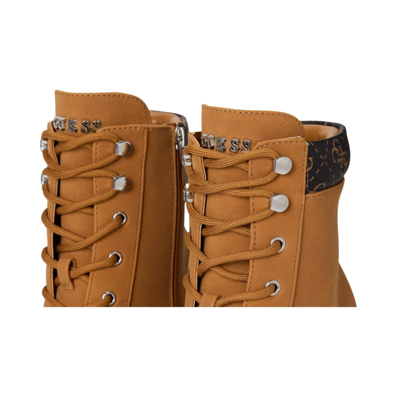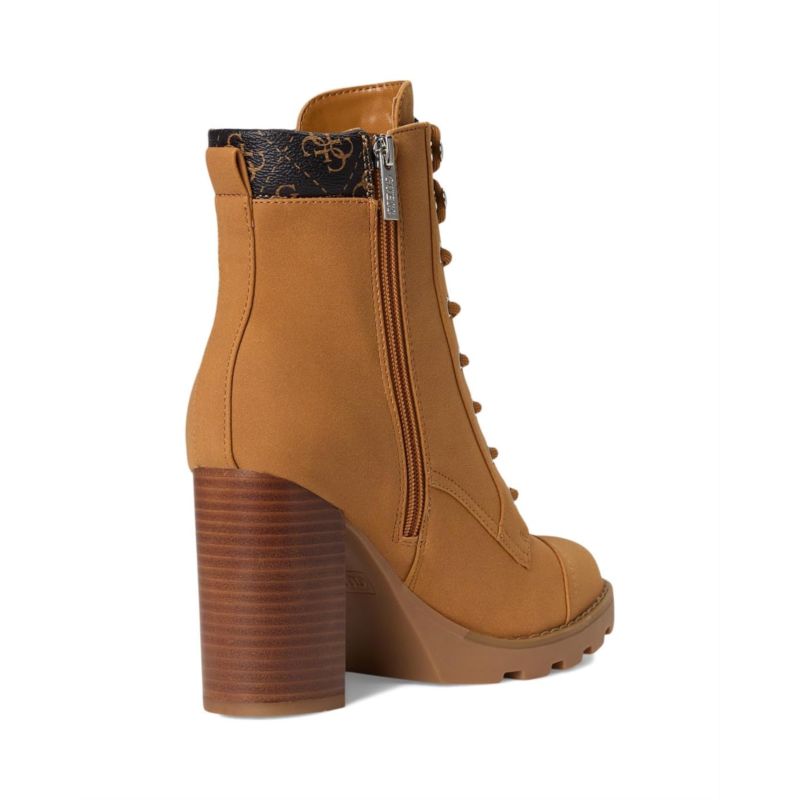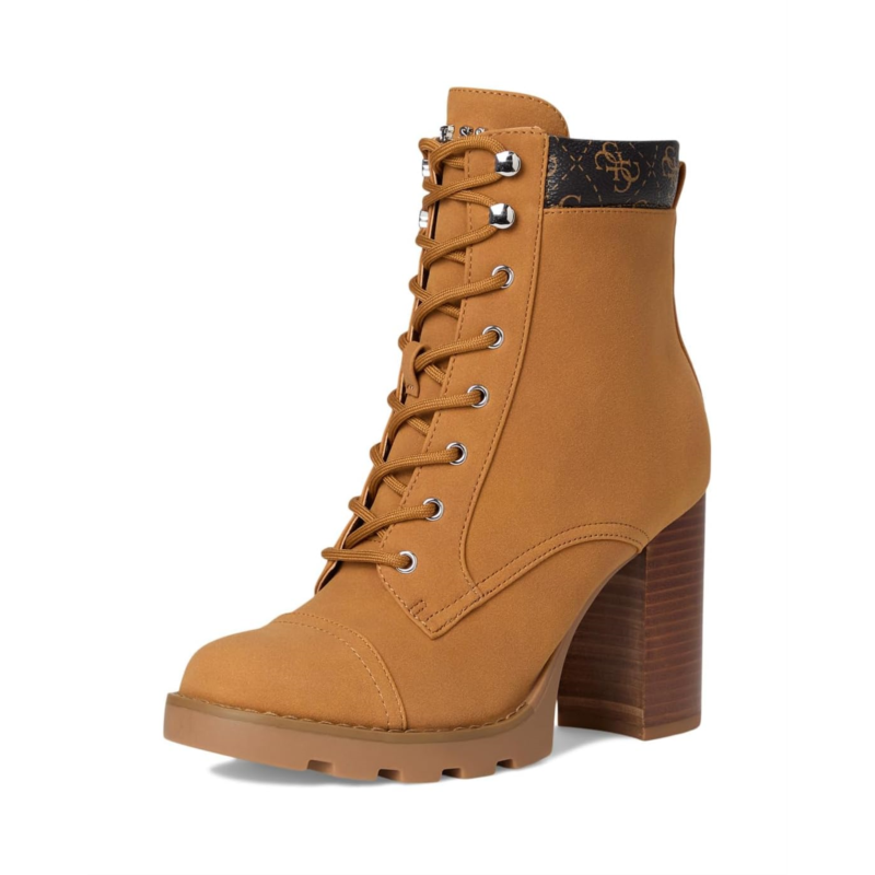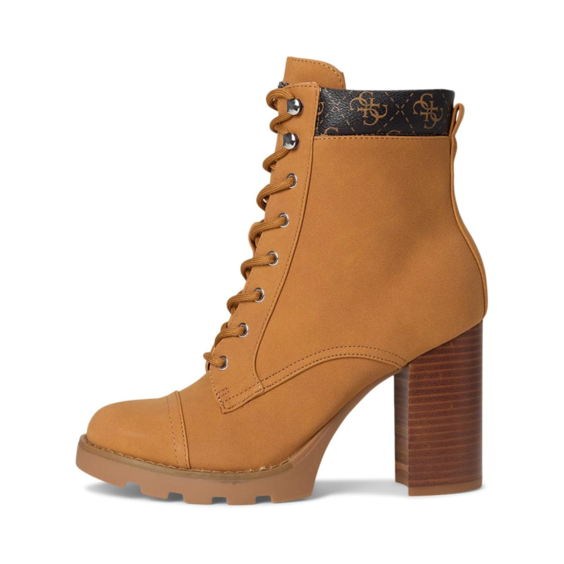 - The Nellsan bootie from Guess offers a tailored look on a sturdy block high heel. The heeled, lace up combat bootie is a classic look with a modern feel.