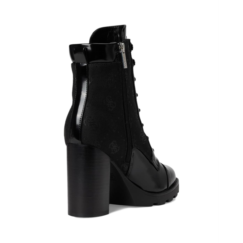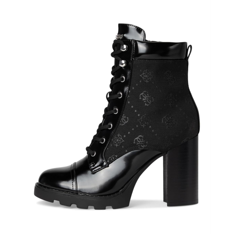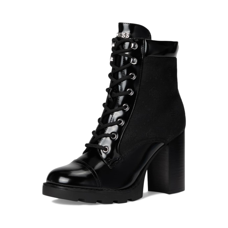 - The Nellsan bootie from Guess offers a tailored look on a sturdy block high heel. The heeled, lace up combat bootie is a classic look with a modern feel.