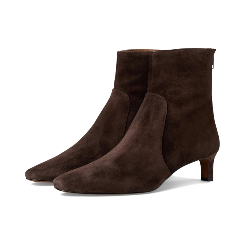- Look refined as you step out for casual get together or special occasions wearing Madewell Dimes Kitten Heel Boot - Suede Boots. These ankle-high, pointed toe boots are crafted with a suede upper with back zip closure, leather lining, and a memory foam insole. The kitten heel detail elevates the look.
