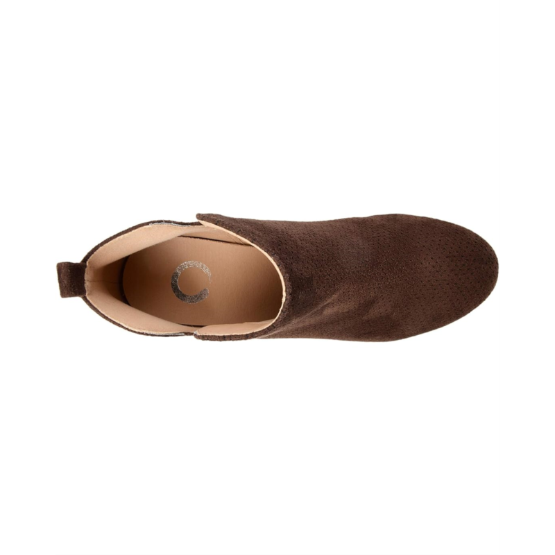 - Finish off your style with the low-profile look of the Journee Collection Mylee Bootie with a faux leather upper, perforated detail, and pull-on construction with an ankle pull-tab.