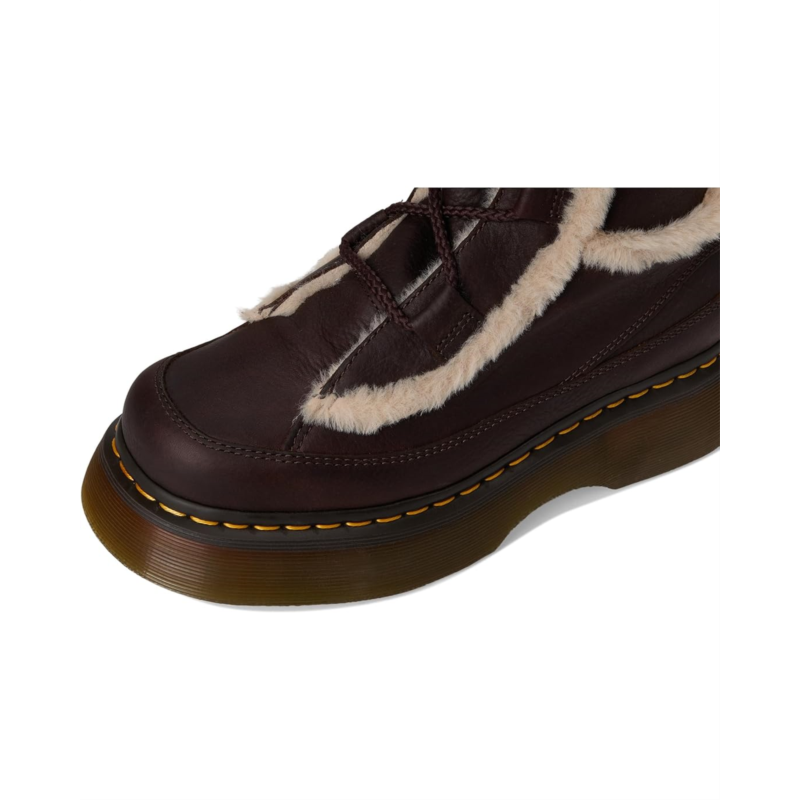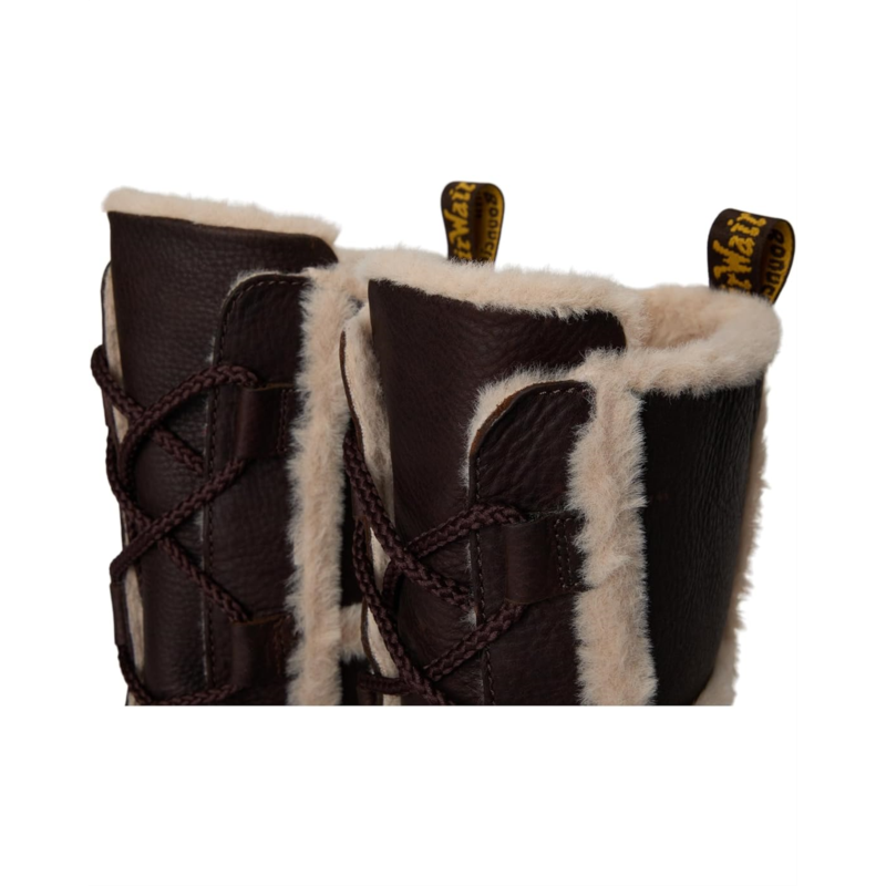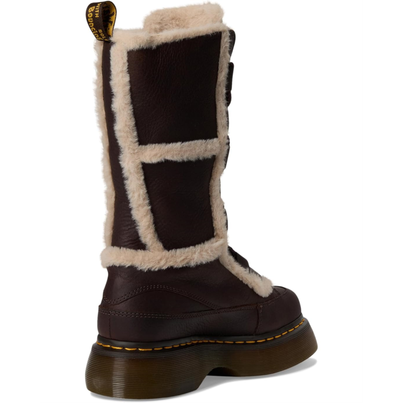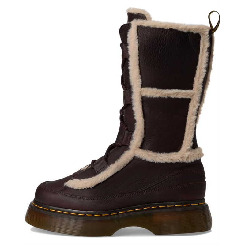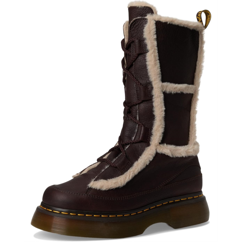 - The cold-toe-ready Dr. Martens Buzz Lace Wl boot is made with soft Grizzly leather and lined with Milo faux fur which extends into the trim, for warmth you can see and feel. The calf-length, lace-up silhouette is detailed with tonal laces and a scripted DM''s heel loop. The boot stands on the barrel-edge Buzz sole, marked with DM''s grooving, welt stitching, and a leaf pattern on the undersole.