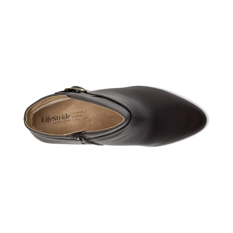 - So sleek and chic, youll never want to take off these LifeStride Guild 3 Zip Short Boots with a sophisticated strap and buckle detail. Their faux leather upper has an almond toe shape, an inside zippered side closure, and a fabric lining. The trusted Soft System comfort technology provides unmatched cushion, support, and flexibility in every pair. These heeled ankle-high boots are easy to go from work to a night out.