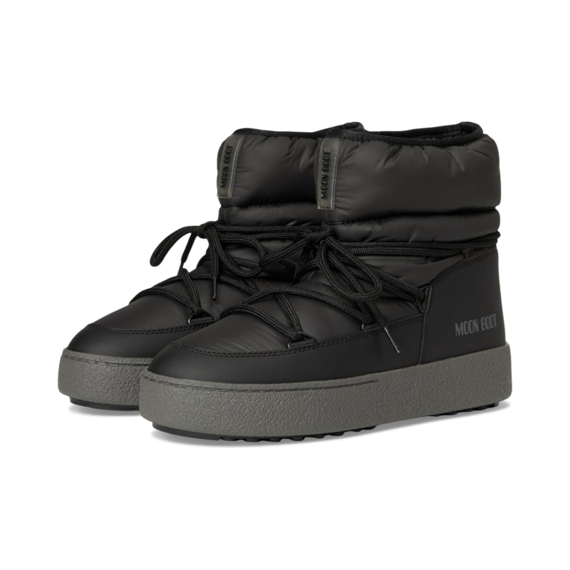 - The stars align in the low-top MOON BOOT Ltrack Low Nylon boots, combining moon-landing aesthetics with slick city style. Rendered in puffy nylon, these hybrid sneaker-boots are set on a flexible, gripped rubber outsole that makes them easy to conquer concrete jungles and rocky trails alike. They are made of a polyester insole and lining. Waterproof and durable, these ankle-high boots feature a lace-up closure for a perfect fit.