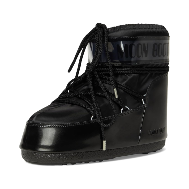 - All that glitters is not gold... sometimes it''s a glossy satin Moon Boot Icon Low Glance. Inspired by the 1969 lunar landing, the Icon Glance riffs on high-technology astronaut gear. It features all the hallmarks of the original style: it''s insulated, fitted with a lightweight thermoplastic midsole and features suction pads on the rubber tread sole that offer serious ground control.