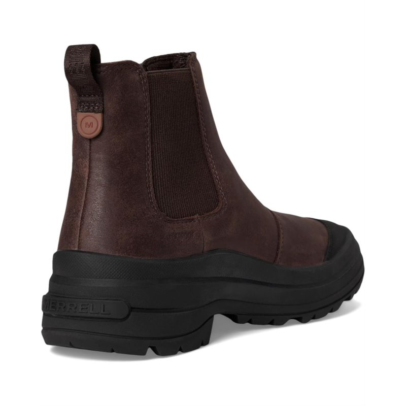 - Designed for urban and outdoor exploration, the Merrell Harper Pull On Waterproof boots are built on a hiking boot-inspired tread and feature an elevated waterproof leather upper for protection against all the elements you may come across. The double stretch gore panels on the side offer easy on and off while the abrasion-resistant rubber toe cap provides added protection. These hiking boots come with a polyurethane insole and mesh lining that keep your feet cool and comfortable. The seam-sealed waterproof construction of these ankle-high boots keeps your feet dry in wet conditions. Venture into the season''s challenges wearing these style-forward and comfortable boots.