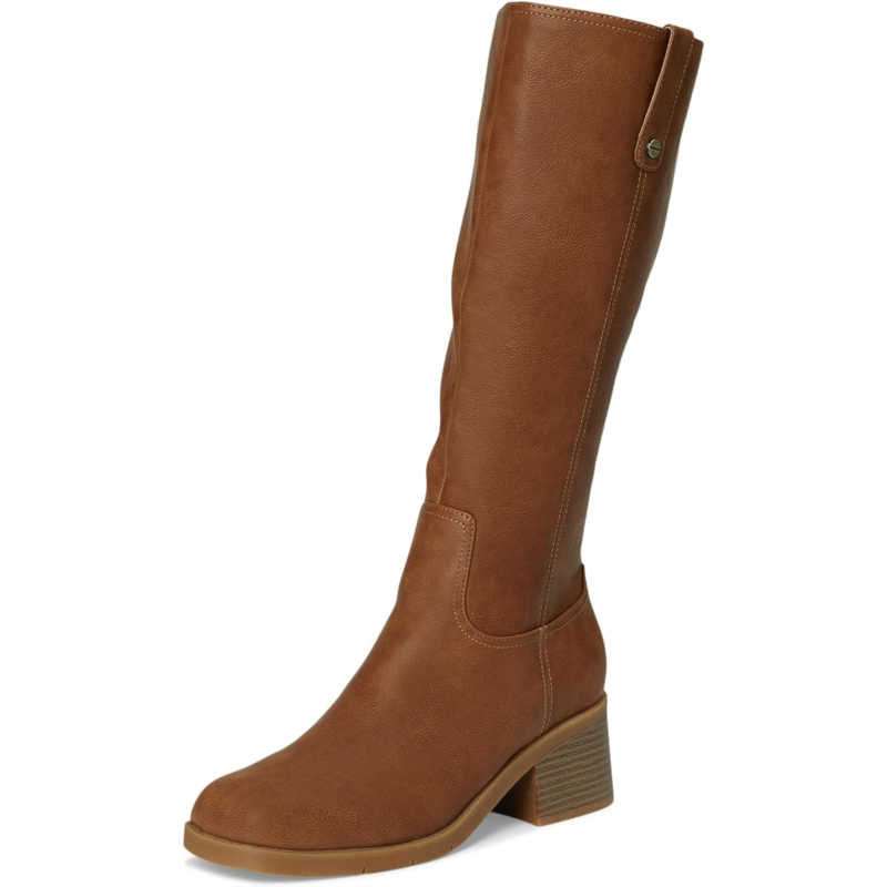 - The Dr. Scholl''s Joplin Riding Tall Boots feature a low-chemical faux leather upper and a sleek silhouette accented by western-inspired stitching, rivet details, and a square toe. The inside zipper ensures effortless on/off wear, while the stacked block heel and lightweight blow thermoplastic rubber outsole offer stability with every step. Crafted with linings and topcloth partially made from recycled plastic bottles, plus a recycled toe box and heel counter, the Joplin also features a cushioned insole made with 15% plant-based BLOOM foam. Designed to promote freshness and long-lasting comfort, the insole technology supports your stride while minimizing odor and moisture buildup?so you can move confidently.