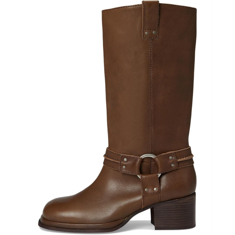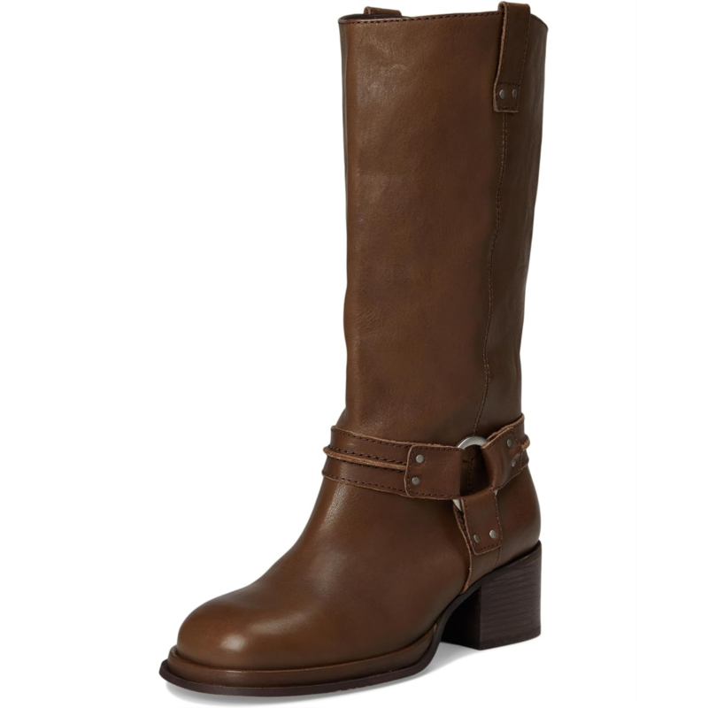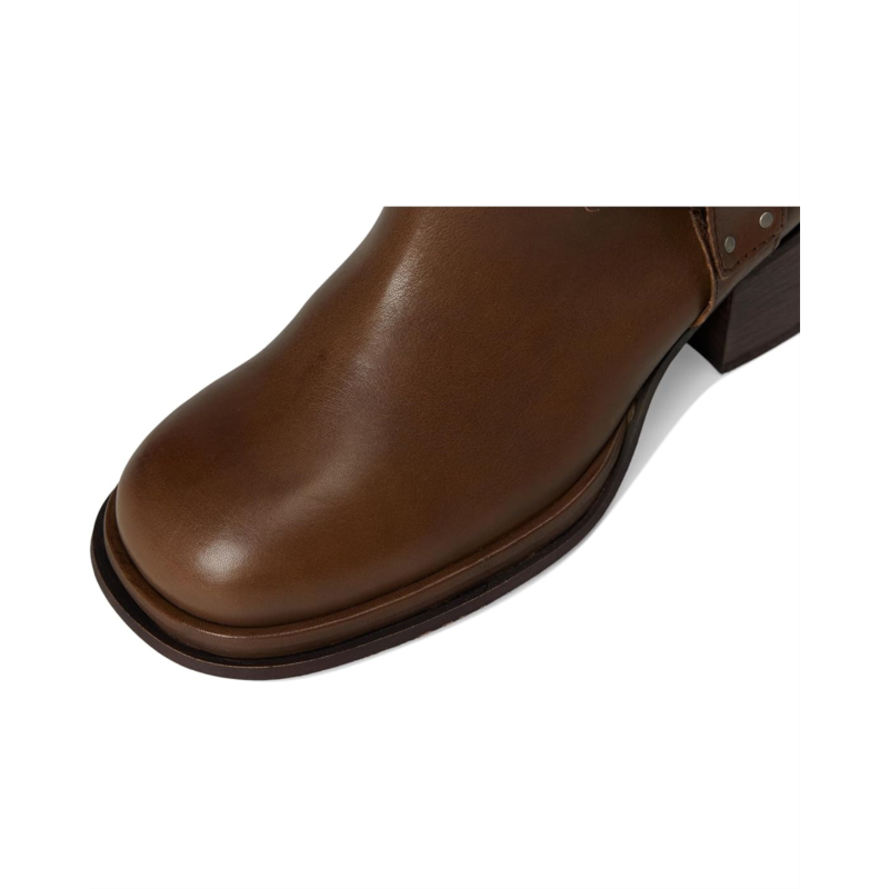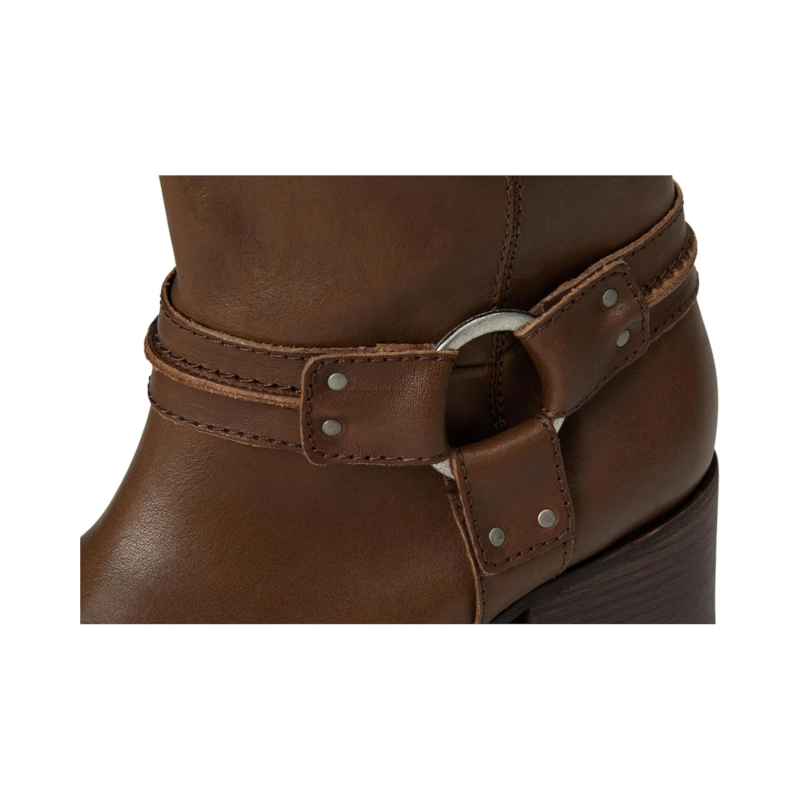 - Step in style choosing these Anok Harness Moto Boots from Free People, featuring a shiny finish, a metal harness detail, and a stacked heel for a bold, heritage-inspired statement pair. Made from rich leather upper with a shiny finish, these boots feature a round toe design for an effortless look.