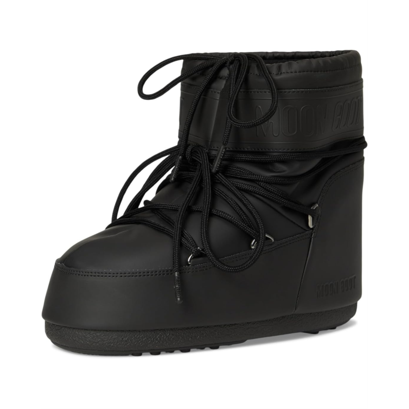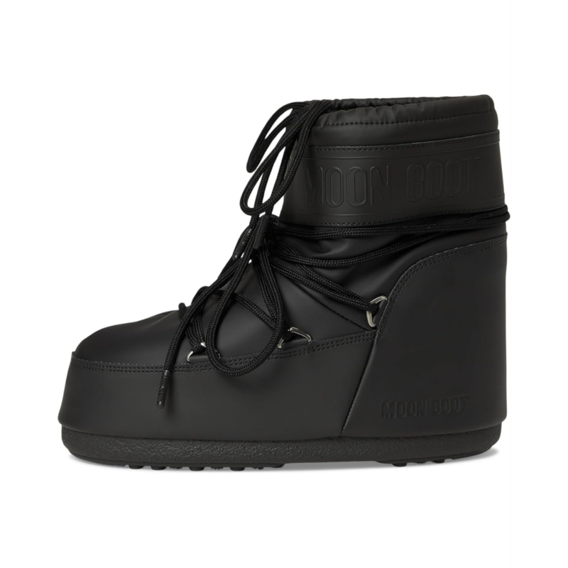 - Moon Boot Icon Low Rubber - this iteration of the Icon is crafted in robust rubber to combine the weatherproof properties of the ProTECHt and the futuristic features of the original Moon Boot. Inspired by the 1969 lunar landing, the design riffs on high-technology astronaut gear. It''s insulated, fitted with a lightweight midsole and features suction pads on the rubber tread sole that offer serious ground control.