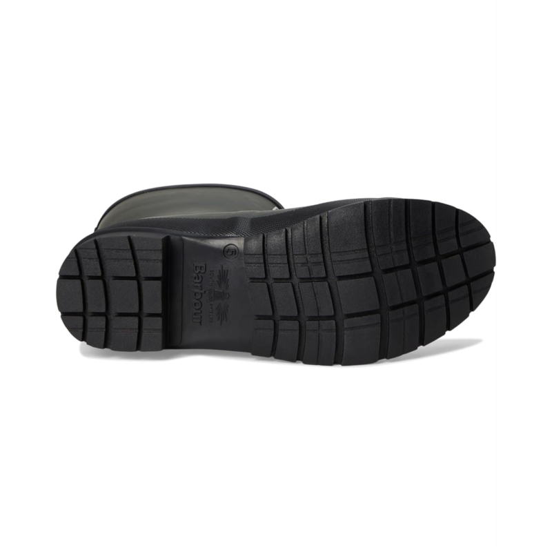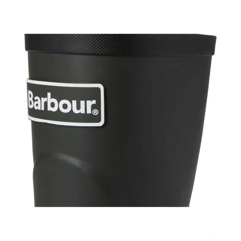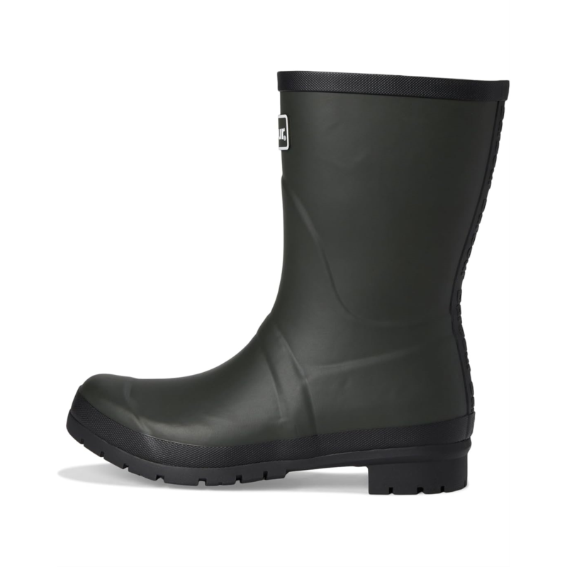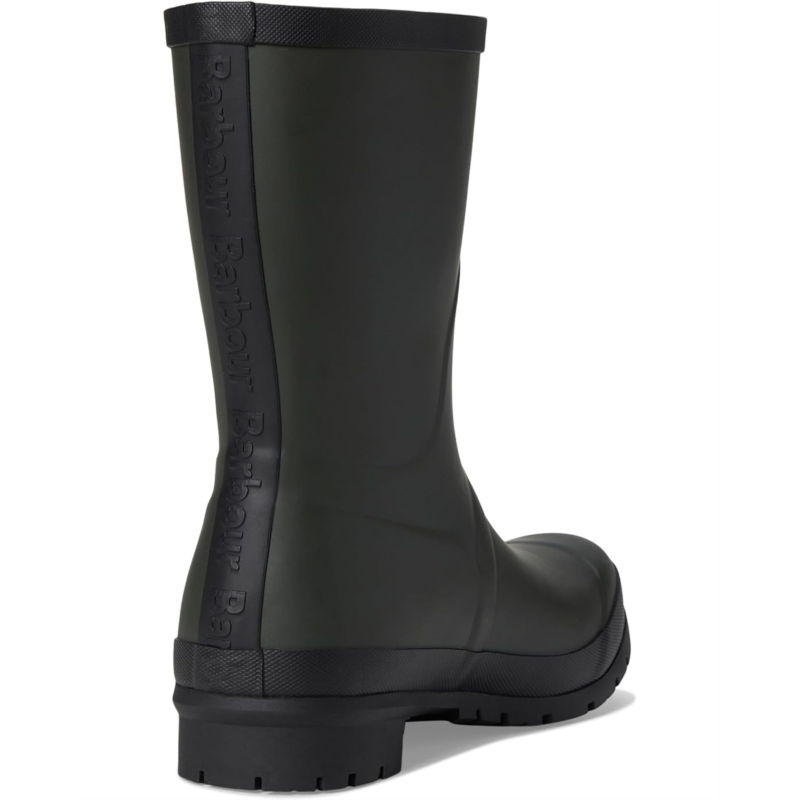 - Stay dry and fashionable wearing the Barbour Banbury Mid Welly boots! These versatile mid-calf boots feature an upper made with rubber and other fibers, making them perfect for braving the elements. The polyester lining and padded insole provide all-day comfort, while the sleek round toe design adds a sophisticated touch to your look.