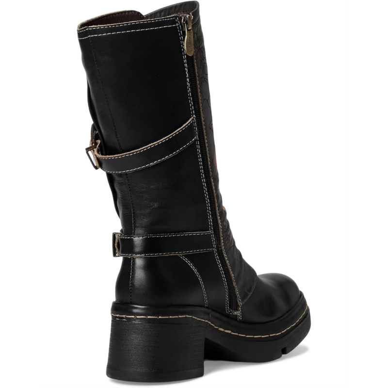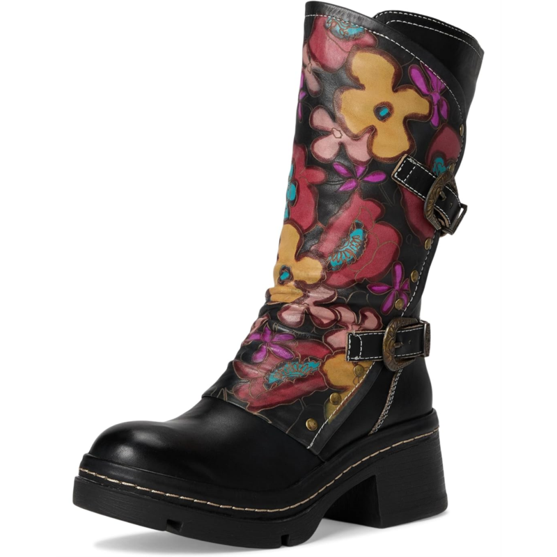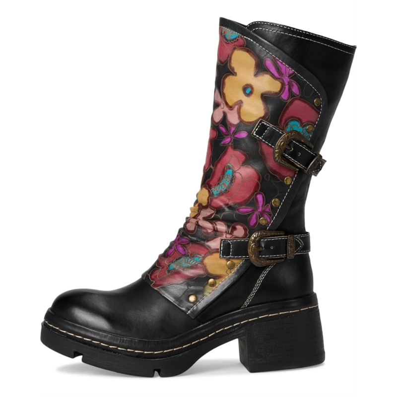 - Make your style statement wearing these showstopping L''Artiste by Spring Step Coolvibes boots. Featuring a rich blend of burnished leather upper with hand-painted, intricate floral embroidery, these knee-high boots embody modern artistry with a vintage edge. Their cushioned faux leather insole provides all-day comfort, while the velvet lining keeps your feet cozy. They are designed with a zippered side closure for an easy on and off and adjustable buckles for an edgy, custom fit. Styled with burnished leather elements, these heeled boots pair perfectly with jeans or a flowy dress.
