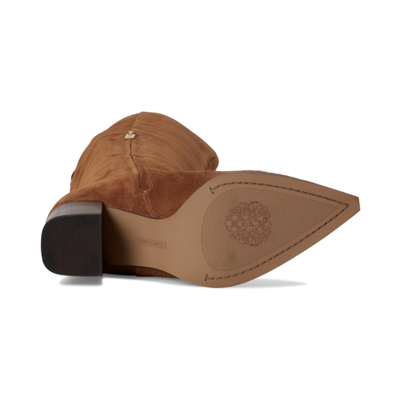 - Step up, stand tall, and own the spotlight wearing the Vince Camuto Lilibet Knee High Boot! Designed with a sleek leather upper, this boot blends timeless sophistication with modern edge, making it your ultimate day-to-night essential. The pointed toe elongates your silhouette, while the sturdy block heel offers confidence-boosting height without compromising on comfort. A smooth fabric lining and cushioned polyester insole keep every step effortless, while the rubber outsole ensures lasting traction. The streamlined knee-high shaft adds a chic finish, perfectly complementing everything from tailored skirts to skinny denim. With its zippered side closure for easy wear, the Lilibet is your go-to boot for polished workdays, elevated evenings, and everything in between.