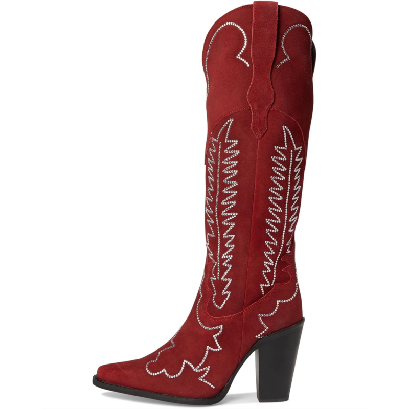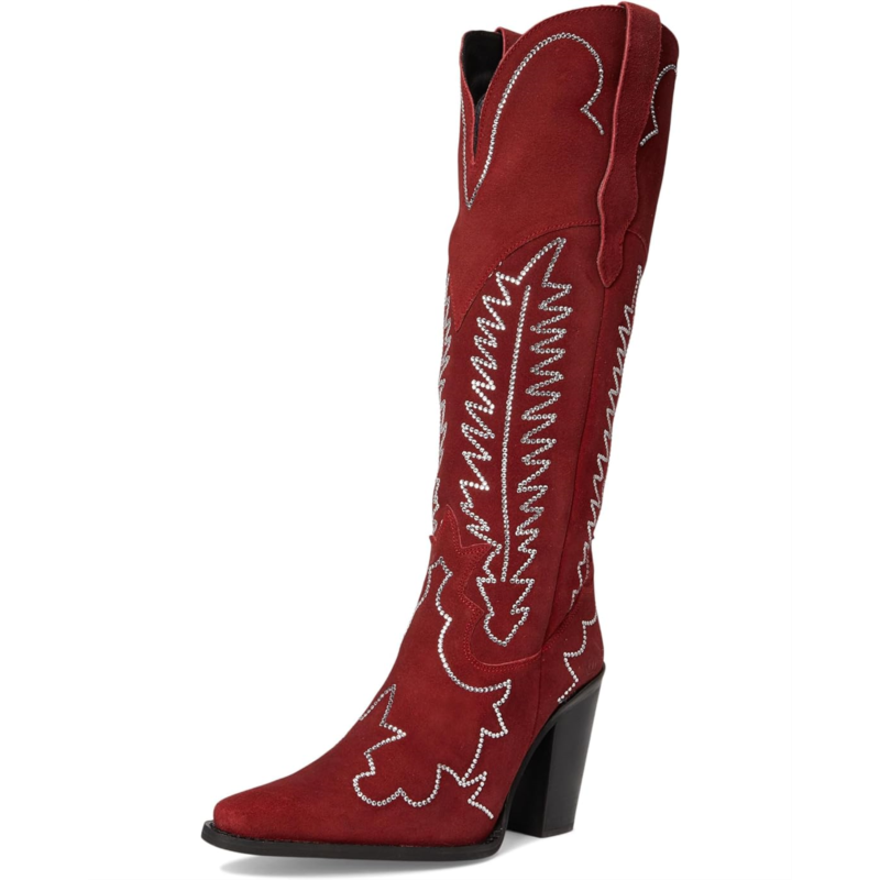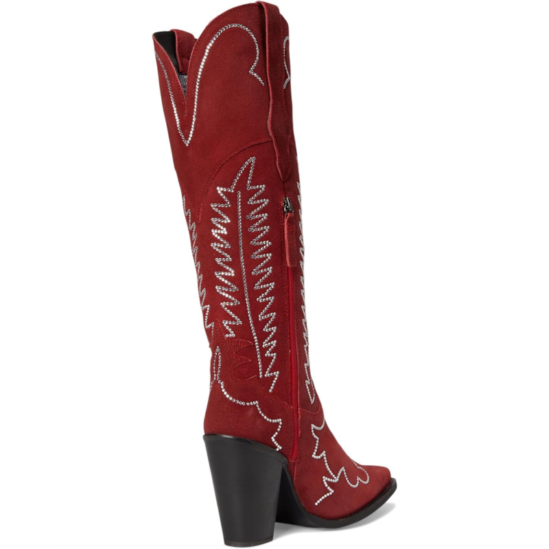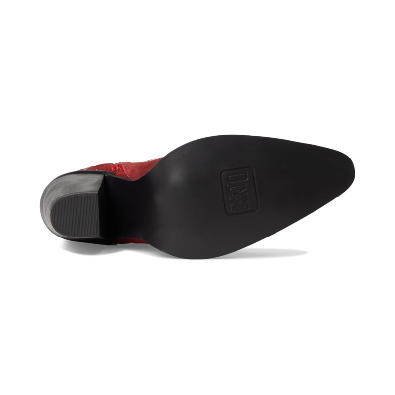 - One glance isn''t enough. The Dingo Double Take boots take sparkle to new heights, literally. These tall, high-heeled stunners are drenched in rhinestone detailing that mimics classic stitching, turning every step into a statement. They are designed with a suede upper, cushion comfort foam insole, and polyester lining. Their zippered side closure ensures easy on and off. With a sharp silhouette and sky-high vibe, these knee-high boots are made for main character moments, not the background.