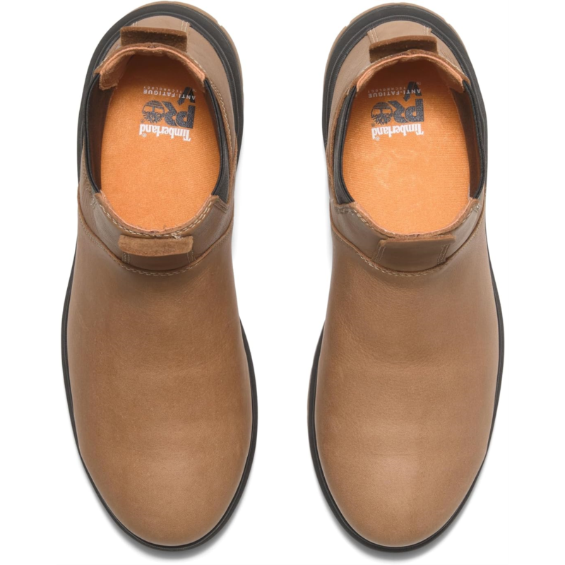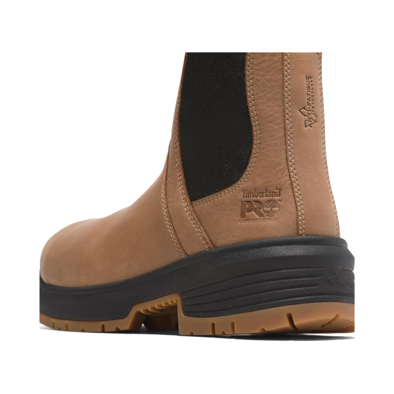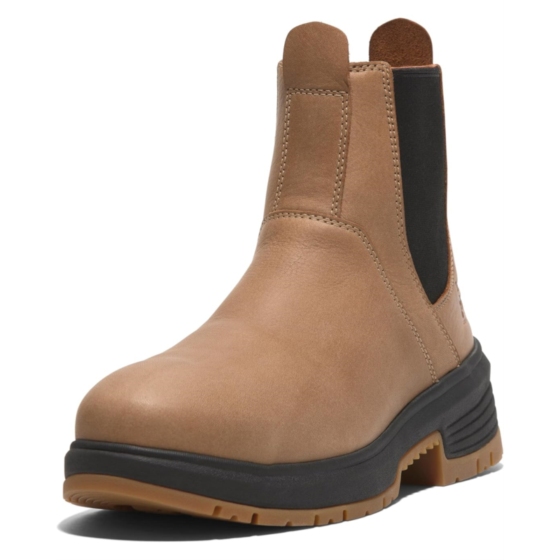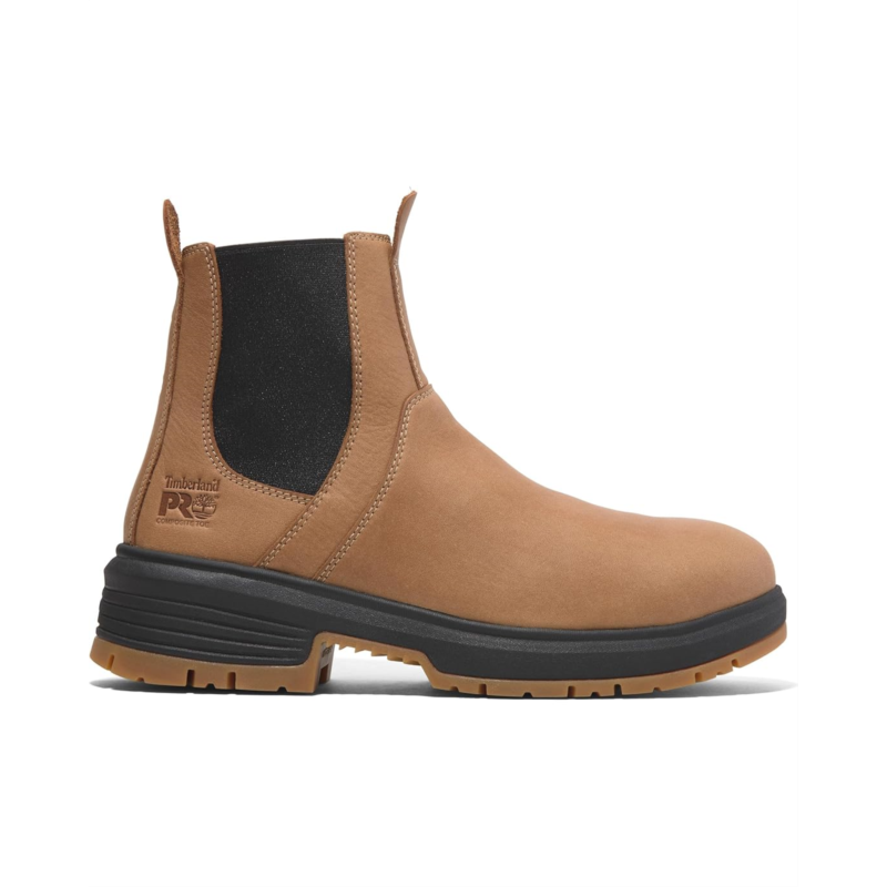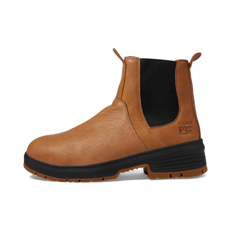 The primary materials that compose this product contain a minimum of 20 percent recycled content.- Featuring a comfort system designed with shock-absorbing, geometrical technology that returns energy back to the foot to deliver all-day support and comfort, the Timberland PRO Birchline Chelsea Composite Safety Toe boots are perfect for your outdoor rides and adventures. The polyurethane insole and ReBOTL lining provide added comfort and durability. The leather upper of these boots features gore panels on the side for easy wear. These ankle work boots deliver superior comfort, durability, and performance to get the job done.