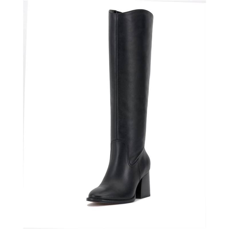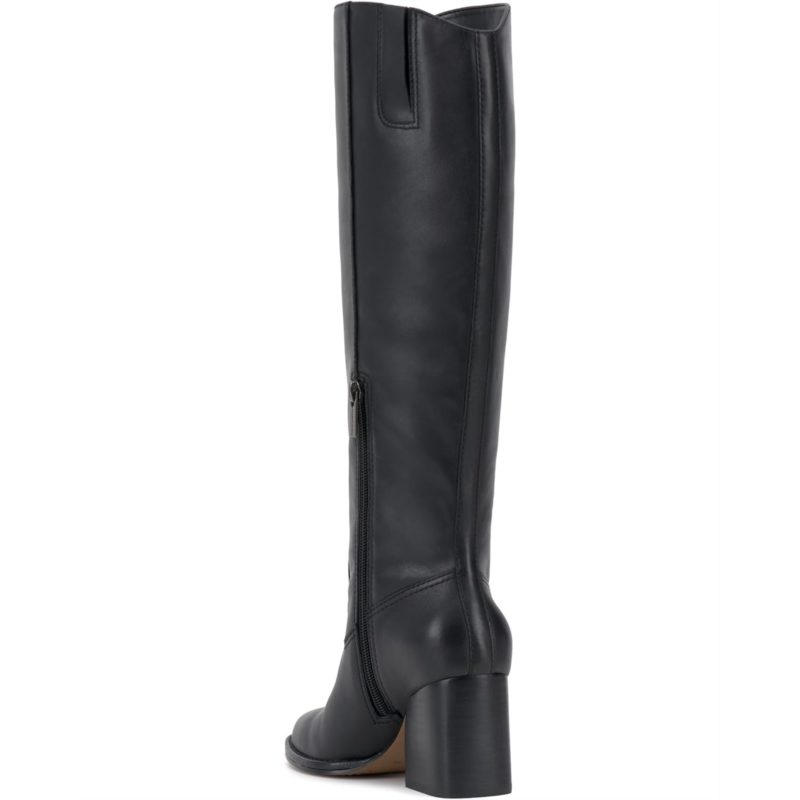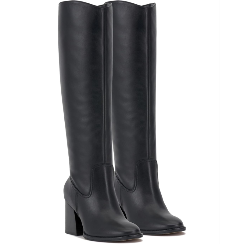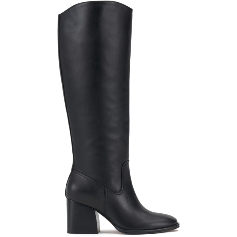 - The knee-high Vince Camuto Leila tall shaft boot has a modern vintage vibe. With soft round toe and a stacked block heel, this sleek boot has zippered side closure and elastic goring on the shaft for improved fit. The footwear is fabric lined and finished on the exterior with a leather-covered welt and rubber outsole.
