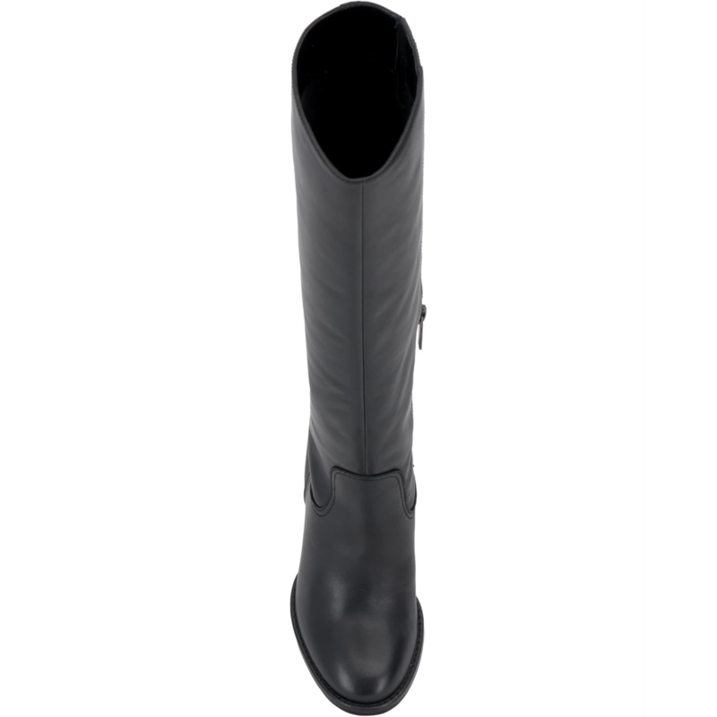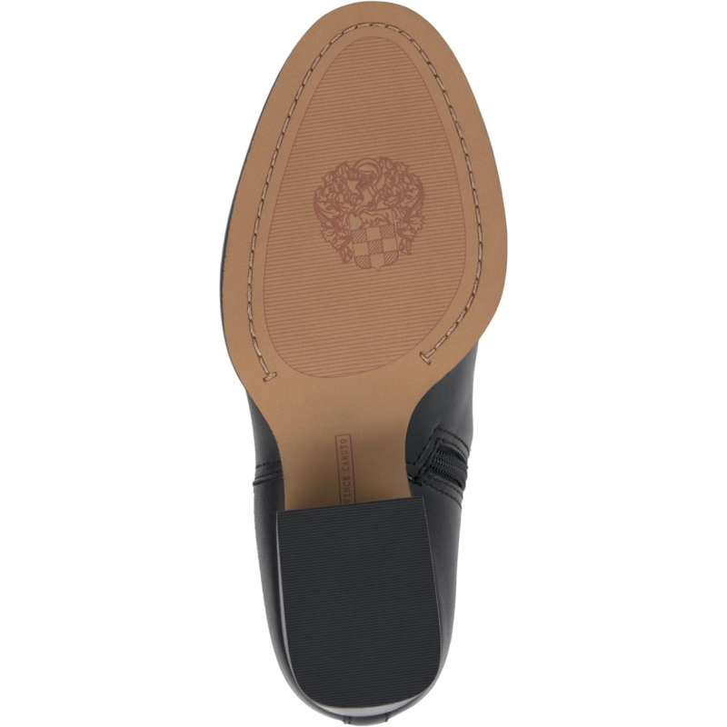 - The knee-high Vince Camuto Leila tall shaft boot has a modern vintage vibe. With soft round toe and a stacked block heel, this sleek boot has zippered side closure and elastic goring on the shaft for improved fit. The footwear is fabric lined and finished on the exterior with a leather-covered welt and rubber outsole.