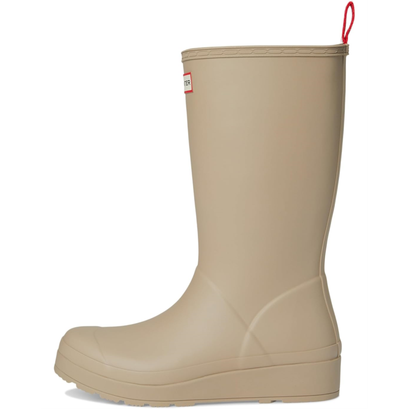 - Step up your style game with the HUNTER Women PLAY TALL BOOT-where fashion meets function. Featuring a sleek rubber upper and outsole, these boots provide unbeatable waterproof protection up to the knee, perfect for rainy days. The polyester lining and insole ensure all-day comfort, while the pull-on design offers hassle-free wear. Embrace the closed toe design for added durability and chic appeal. Whether you''re navigating city streets or country trails, these boots keep you dry and stylish.