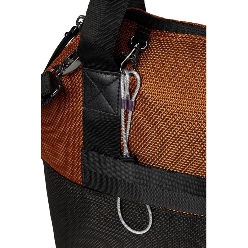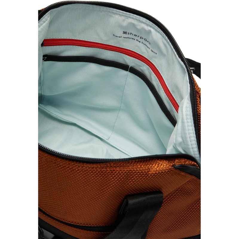 - Carry your world in the Sherpani Eclipse AT. Made using theft prevention technology, locking zippers, and RFID protection this classy and spacious bag features zippered closure, two shoulder straps, trendy shape with corner zippers that expands the bag size, loop chair lock, and slash-proof bottom.