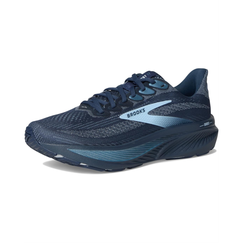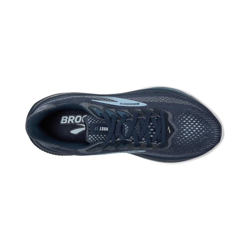 - The Brooks Ghost 17 shoes offer balanced cushioning for smooth transition, support, and reliability in the long run. Their premium nitrogen-infused DNA Loft V3 provides a balanced ride and plush underfoot comfort. Crafted for ultimate comfort and peak performance, the new double jacquard air mesh upper keeps your feet cool and comfortable. They are designed with an EVA insole and nylon lining. These lace-up shoes are a perfect choice for your outdoor rides and adventures.