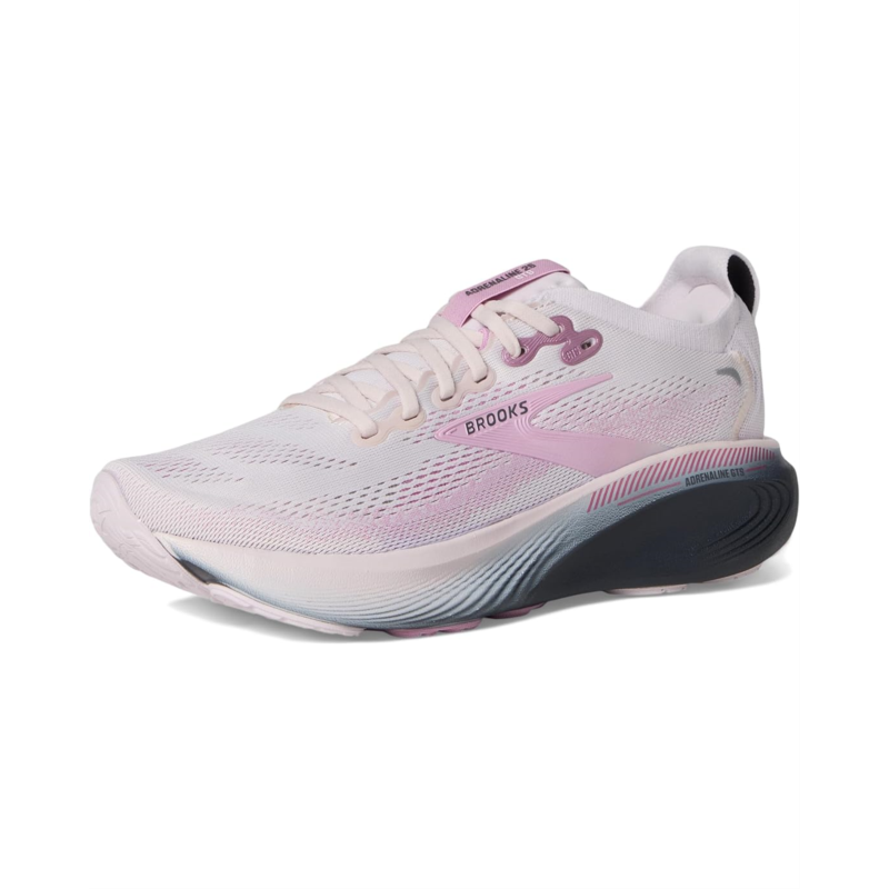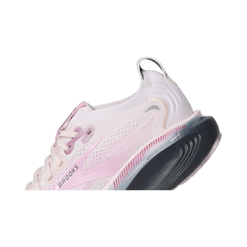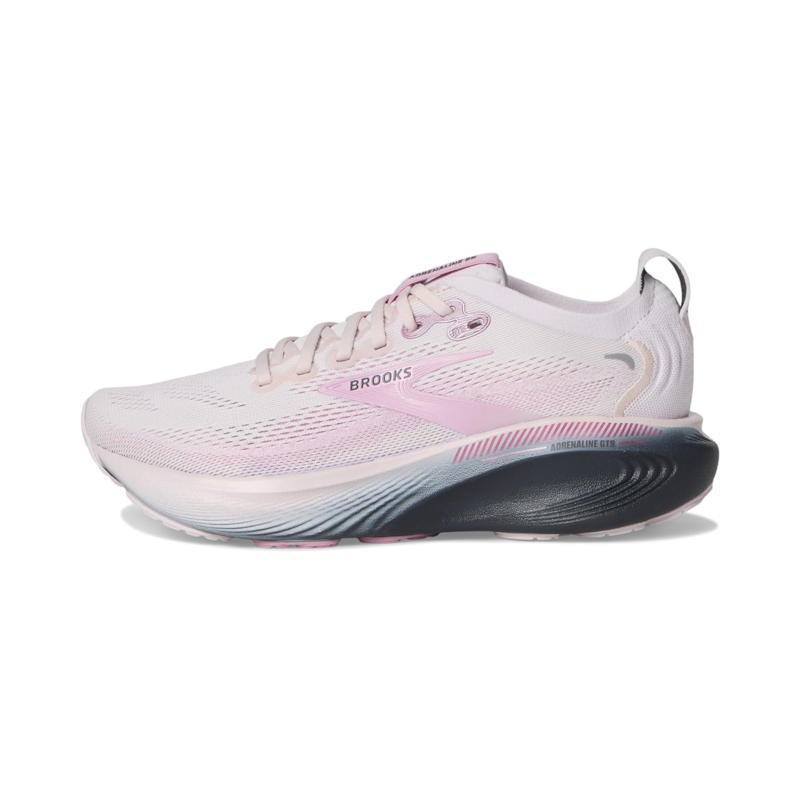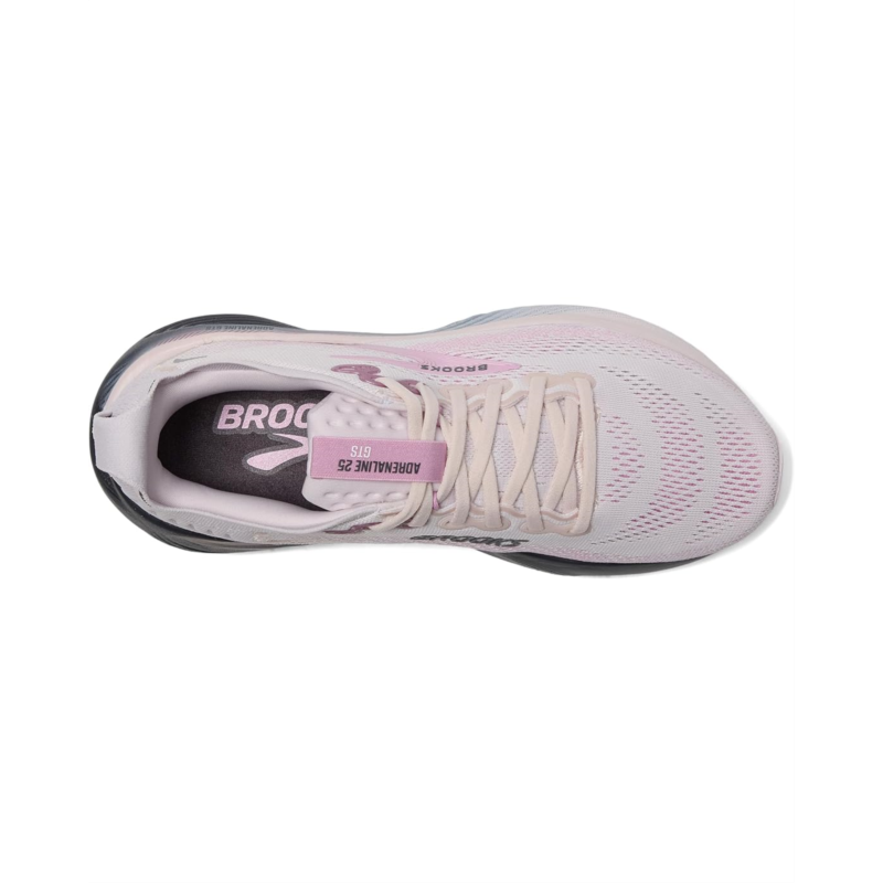 - The Brooks Adrenaline GTS 25 shoe features a 3 mm of added DNA LOFT v3 cushioning in the forefoot and 1 mm in the heel, enhancing comfort and responsiveness. The nitrogen-infused DNA LOFT v3 midsole delivers lightweight softness and dynamic energy return, while the GuideRails support system helps reduce excess movement from heel to knee, promoting a smoother stride. The shoe''s engineered mesh upper and flatknit collar offer a secure, breathable fit, making it ideal for runners seeking a balance of support and plush cushioning. With its 10 mm offset, the Adrenaline GTS 25 maintains the trusted geometry of its predecessors while improving underfoot feel for distraction-free miles.