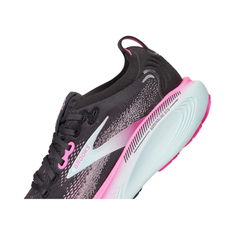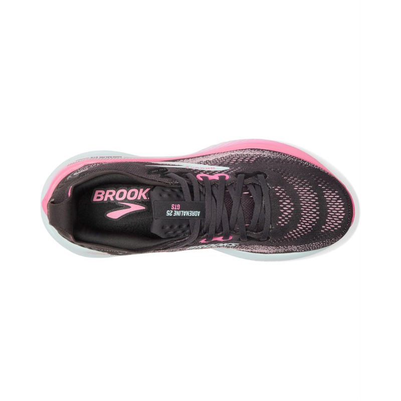 - The Brooks Adrenaline GTS 25 shoe features a 3 mm of added DNA LOFT v3 cushioning in the forefoot and 1 mm in the heel, enhancing comfort and responsiveness. The nitrogen-infused DNA LOFT v3 midsole delivers lightweight softness and dynamic energy return, while the GuideRails support system helps reduce excess movement from heel to knee, promoting a smoother stride. The shoe''s engineered mesh upper and flatknit collar offer a secure, breathable fit, making it ideal for runners seeking a balance of support and plush cushioning. With its 10 mm offset, the Adrenaline GTS 25 maintains the trusted geometry of its predecessors while improving underfoot feel for distraction-free miles.