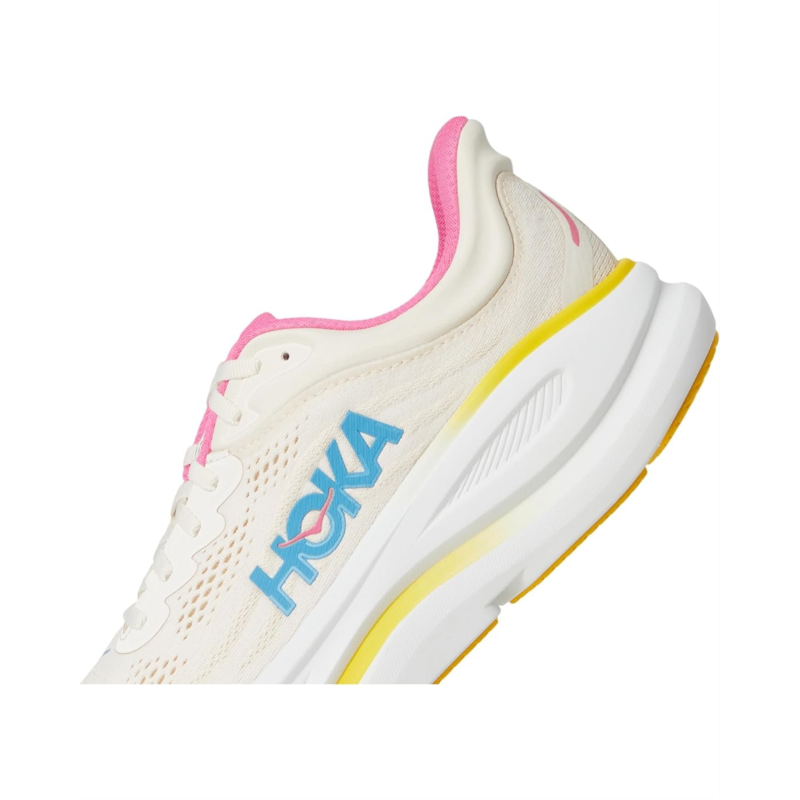 - Take on your sports and fitness journey with style and confidence wearing Hoka Bondi 9 Sneakers. The low-top sneakers are crafted with a jacquard knit engineered mesh upper with zonal breathability, cotton lining, textile insole, and a new premium foam midsole that delivers a soft, resilient ride. This ultra-cushioned, round toe sneaker is finished with Durabrasion rubber outsole to combat high wear zones. Plus, the Hoka branding on the side panel adds an authentic touch and the lace-up closure ensures a secure fit.