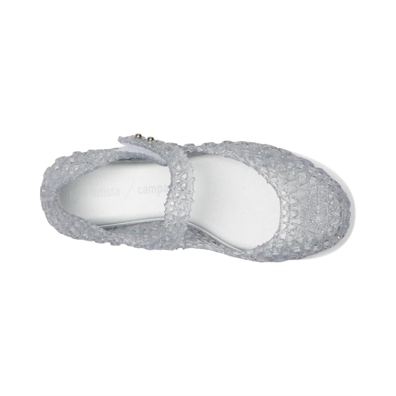 - The Mini Melissa Campana Papel BB flats are a sparkly, fruit-scented jelly flat with playful retro charm has a hook-and-loop Mary-Jane strap for easy on and off.
