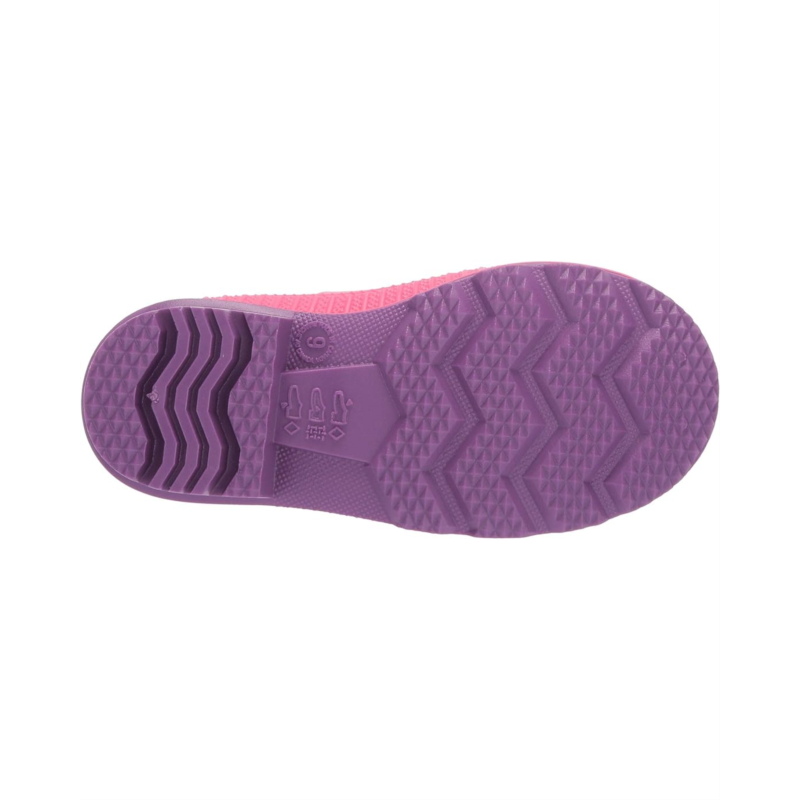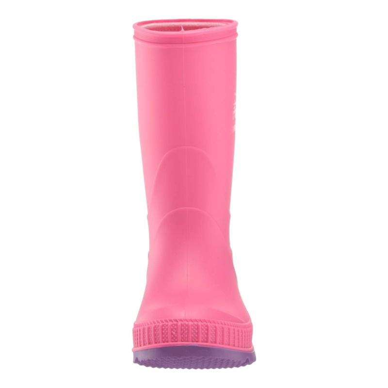 - Pull-on rainboots feature a smooth textile lining, removable shock-absorbing footbed, and a non-marking rubber outsole.