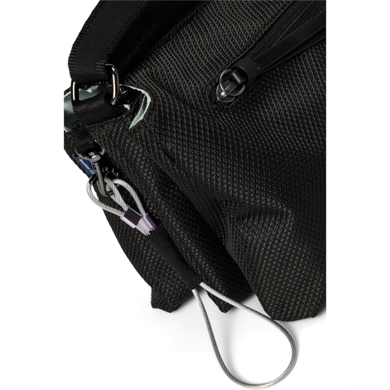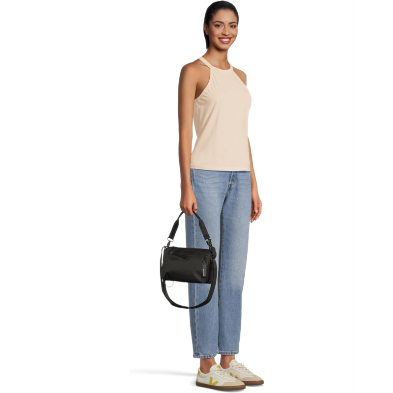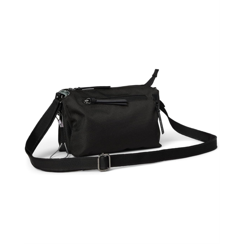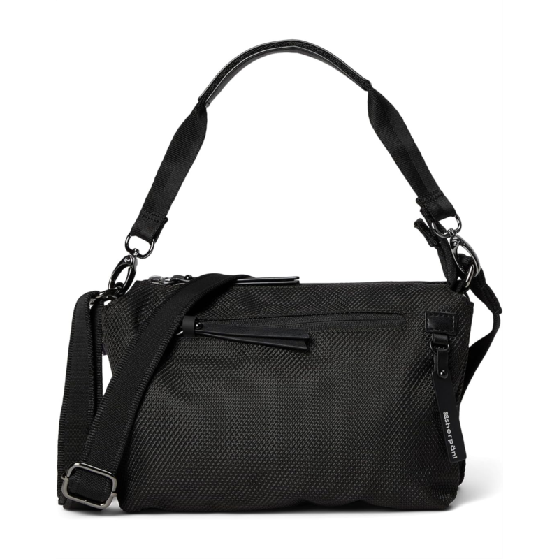 - A stylish, lightweight crossbody to bring on your next trip. The inside of the Sherpani Mei AT features effortless organization, and the outside is equipped with Sherpani anti-theft tech. Explore more with everything in its place (including your peace of mind!). The combination of recycled Melange and Ballistic nylon fabrics makes up this lightweight, water-resistant, and durable bag, while still delivering a sophisticated look. The interior lining of the bag is a pale color which allows easier visibility when searching for items. Features polyester construction with vegan leather trim and detailing.