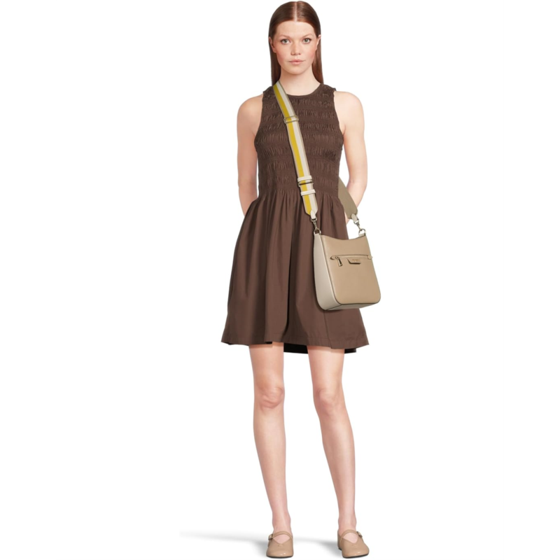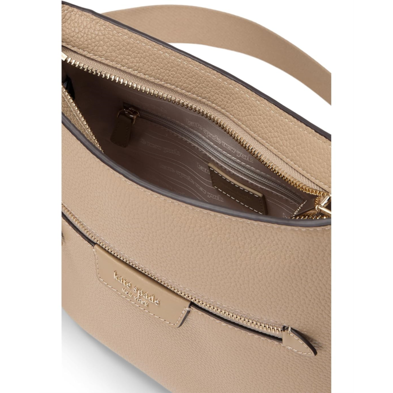 - Enjoy your travel carrying the functional and stylish Kate Spade New York Hudson Colorblocked Pebbled Leather Messenger Crossbody. Crafted from leather, this bag features zippered closure, detachable and adjustable crossbody strap, one zippered exterior pocket, one exterior slip pocket, and one interior slip pocket.