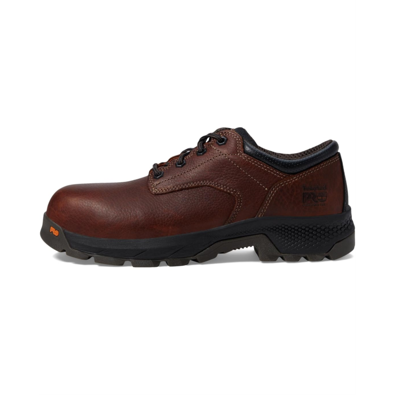 The primary materials that compose this product contain a minimum of 20 percent recycled content.- There''s a new TiTAN boot on the job-the next generation EV style has a lightweight Hover Spring foam midsole that provides industry-leading comfort and flexibility, while retaining the durability you need for harsh work environments. Starting with a Premium Timberland full-grain, a composite safety toe, cement construction for flexibility, electrical hazard protection, Anti-Fatigue Technology footbed, and a non-marking Timberland PRO rubber convex outsole that is heat-, oil-, slip-, and abrasion-resistant for superior indoor and outdoor traction. Plus, its breathable, moisture-wicking lining is made of ReBOTL material containing at least 50% recycled plastic.