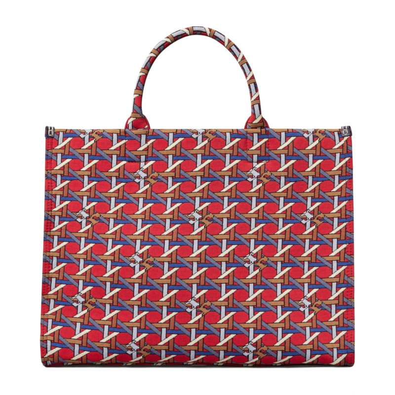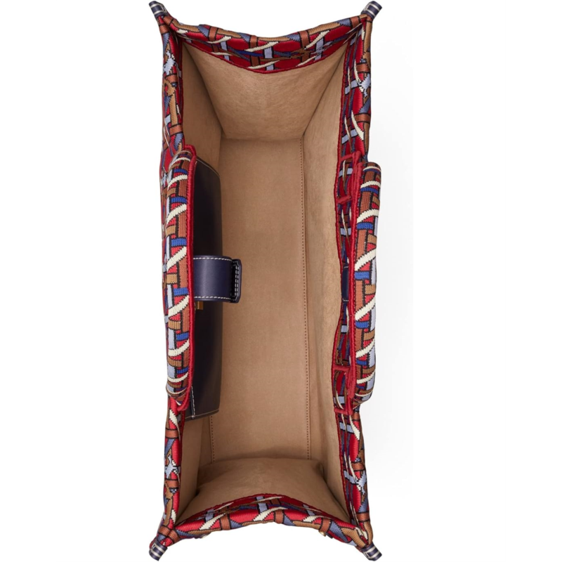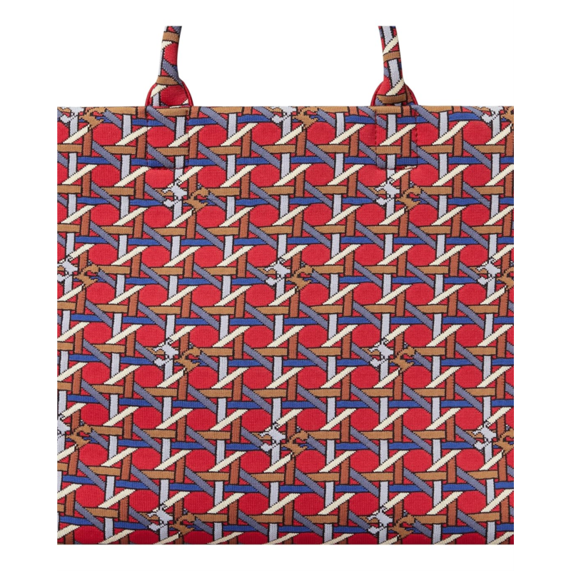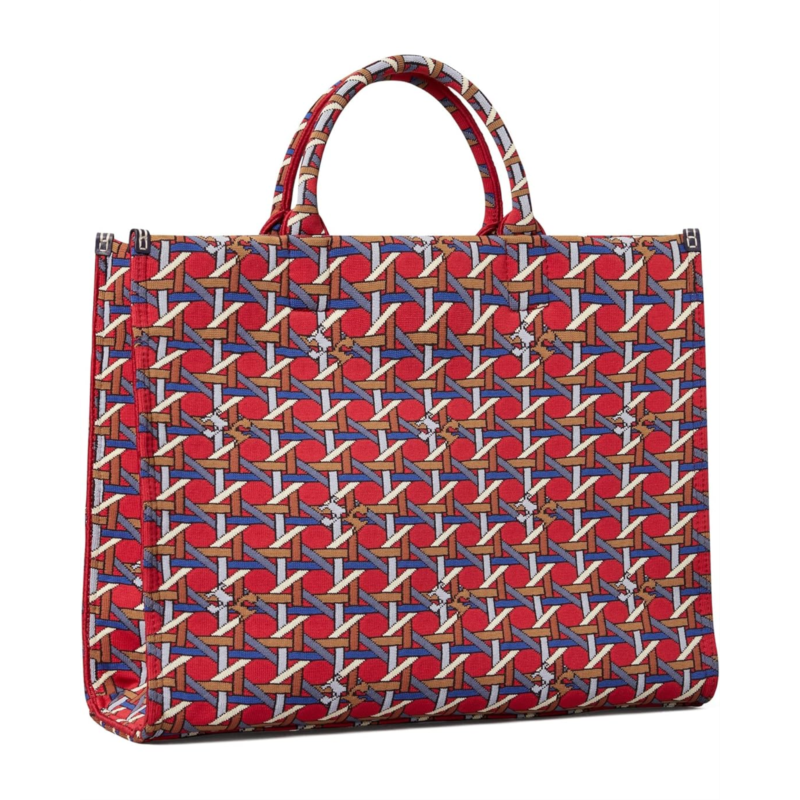 - Pack your favorite items for the next event carrying the Tory Burch Ella Circular Knit Tote Handbag.