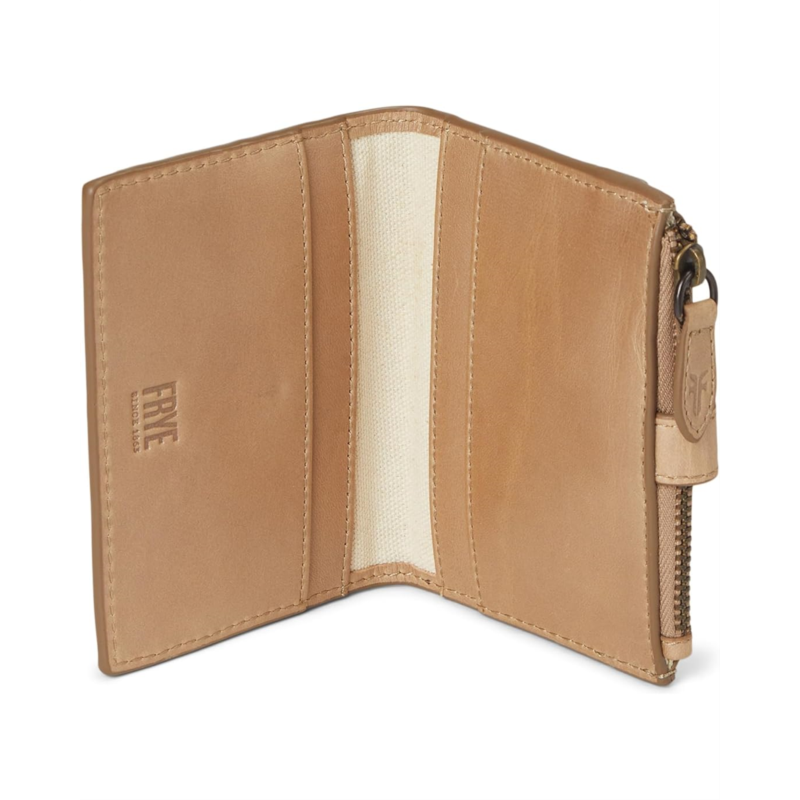 - Carry the Frye Melissa Coin Purse, and add endless charm to your look. Crafted from leather, this wallet features zippered closure, a front credit card slot, middle zippered partition pocket and back credit card slot. Organized Essentials: lock closure, one zippered exterior pocket and two exterior slip pockets.