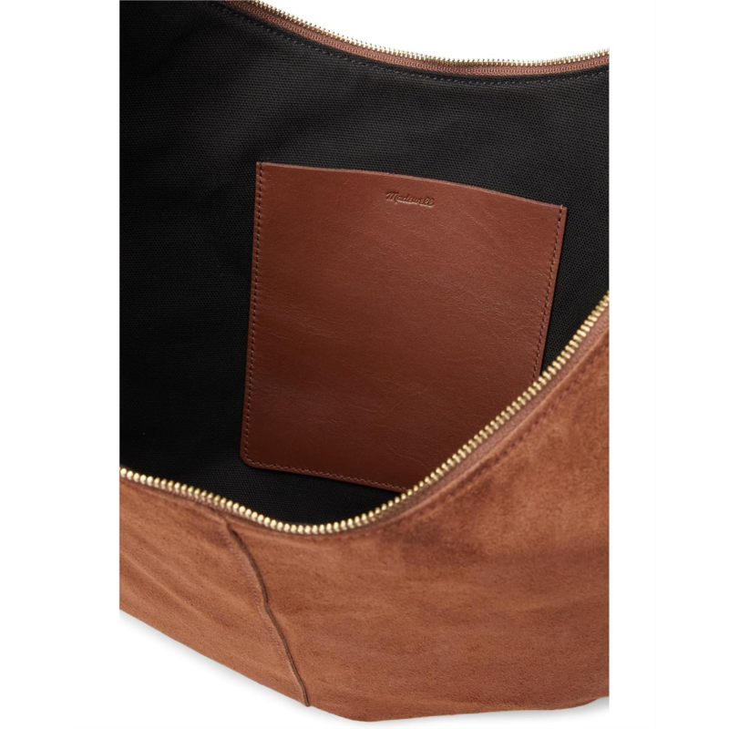 - Effortless elegance meets functional flair, carry Madewell Suede Essentials Slouch Hobo. Crafted from luxurious suede with a chic suede lining, this hobo bag features a comfortable shoulder strap for easy wear. The zippered closure ensures your belongings are secure, while the two spacious compartments and additional pocket keep you organized on the go.