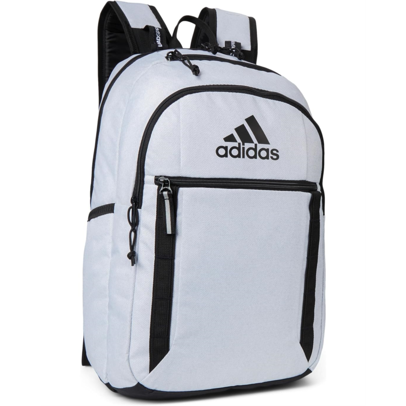 - Carry everything you need for a busy day choosing the generously sized adidas Excel 7 Backpack. Two zippered main compartments and two smaller pockets help keep you organized. Two adjustable loadspring back shoulder straps make carrying heavy books and gear more comfortable. Made with lightweight and water-resistant polyester material, this backpack is perfect for all your daily adventures. The zippered closure ensures your belongings stay secure, while the top grab handle adds convenience when youre on the move.