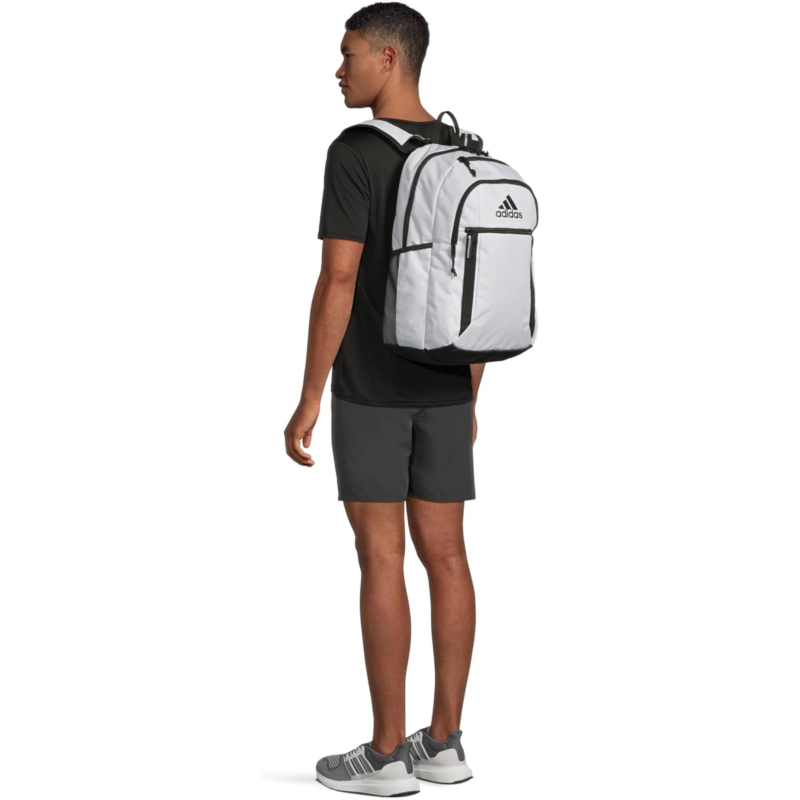 - Carry everything you need for a busy day choosing the generously sized adidas Excel 7 Backpack. Two zippered main compartments and two smaller pockets help keep you organized. Two adjustable loadspring back shoulder straps make carrying heavy books and gear more comfortable. Made with lightweight and water-resistant polyester material, this backpack is perfect for all your daily adventures. The zippered closure ensures your belongings stay secure, while the top grab handle adds convenience when youre on the move.