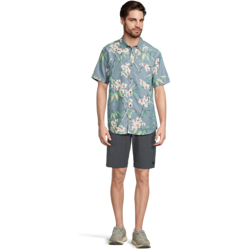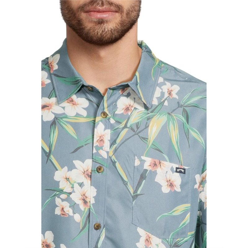- Make a fashionable appearance at the next day out wearing Billabong Sundays Lounge Short Sleeve Shirt. The short sleeve shirt features a collared neck, full-button closure, a patch pocket with brand logo detail, an eye-catching allover floral print, and a shirttail hem.