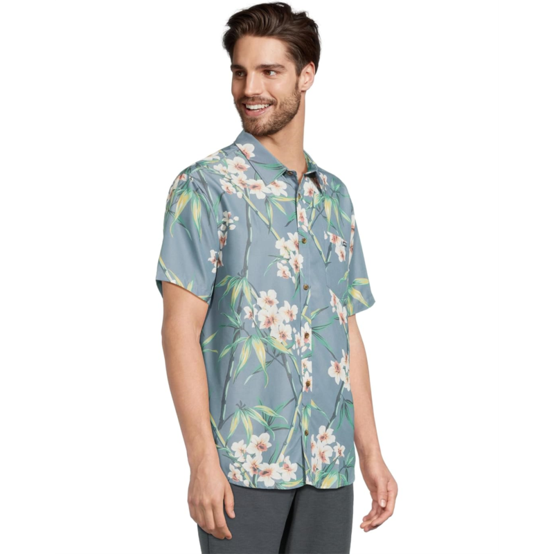 - Make a fashionable appearance at the next day out wearing Billabong Sundays Lounge Short Sleeve Shirt. The short sleeve shirt features a collared neck, full-button closure, a patch pocket with brand logo detail, an eye-catching allover floral print, and a shirttail hem.