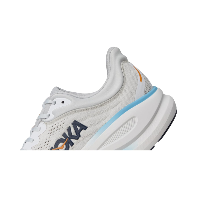 Romance: One of the hardest working shoes in the HOKA lineup, the Bondi 9 delivers peak plushness for everyday miles. Overhauled from top to bottom, we''ve increased the stack height and added a new premium foam midsole to deliver that soft, resilient ride that''s become synonymous with the Bondi. Elevated with a 3D molded collar and structured knit upper with zonal breathability, this ultra-cushioned cult favorite has been finished with Durabrasion rubber to combat high wear zones. The upper is engineered with mesh and recycled polyester, reflective upper details, extended heel pull, and 3D molded collar. The super critically foamed EVA midsole features smooth MetaRocker, rearfoot-focused Active Foot Frame, and Molded EVA sockliner.