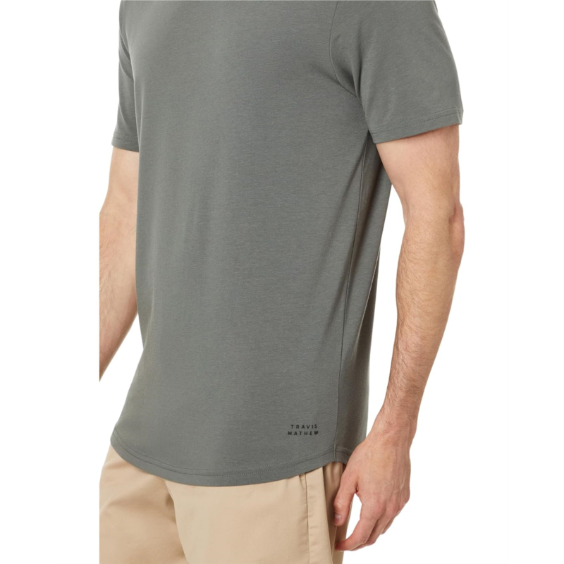 - A smart and comfortable pick for everyday wear, the TravisMathew Cloud Crew T-shirt is constructed in FiberCloud fabric which is super-soft and gives you that next-to-skin feel. Embodying a versatile color and design, the tee comes with a crew neckline, short sleeves, a scooped hem, and a vertical logo print along the side seam.