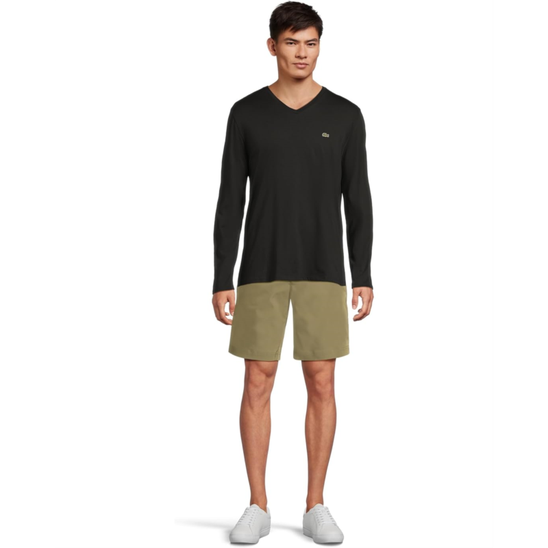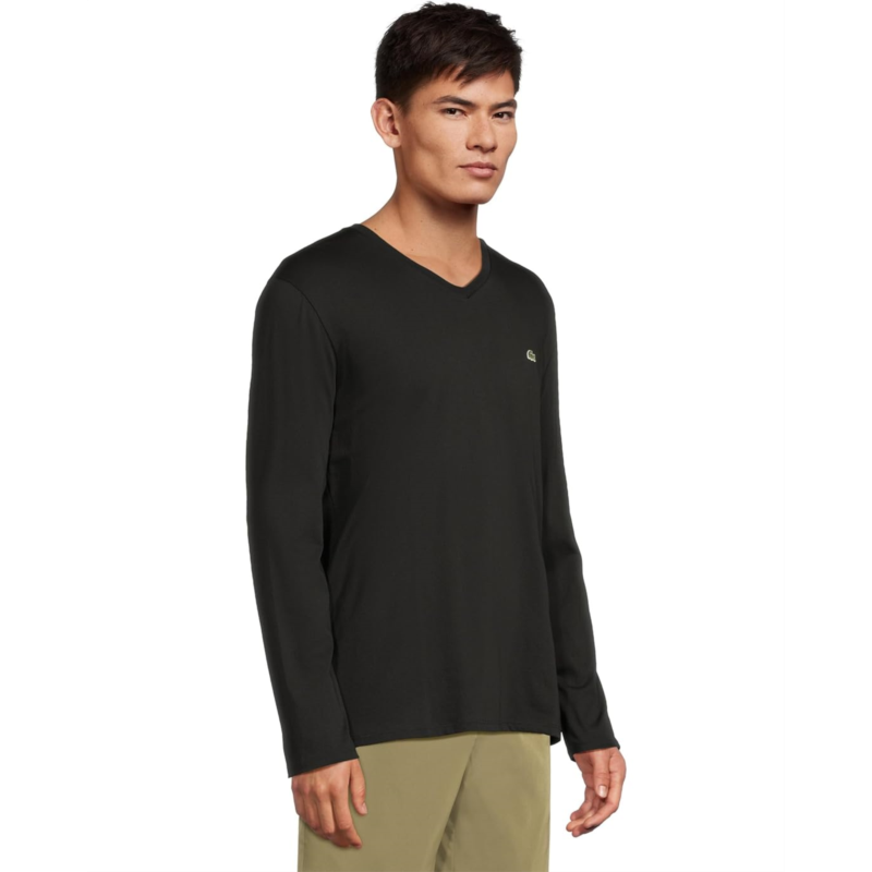 [US] Mens Lacoste Long Sleeve Pima Jersey V-Neck T-Shirt